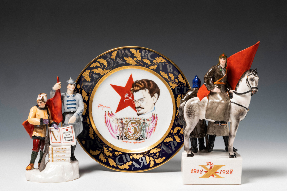 Особое место в моем собрании занимает агитационный фарфор авторства Натальи Данько, одного из главных скульпторов Ленинградского фарфорового завода им. М.В. Ломоносова 1910–1920-х годов. Ценнейший объект в моей коллекции — работа «Пятилетие Красной Армии» 1923 года, личный подарок Льву Троцкому от сотрудников завода. Это очень редкая скульптурная композиция, в ней много символизма: она показывает важный исторический рубеж нашей страны. Мне очень нравится это произведение своим характером и настроением.