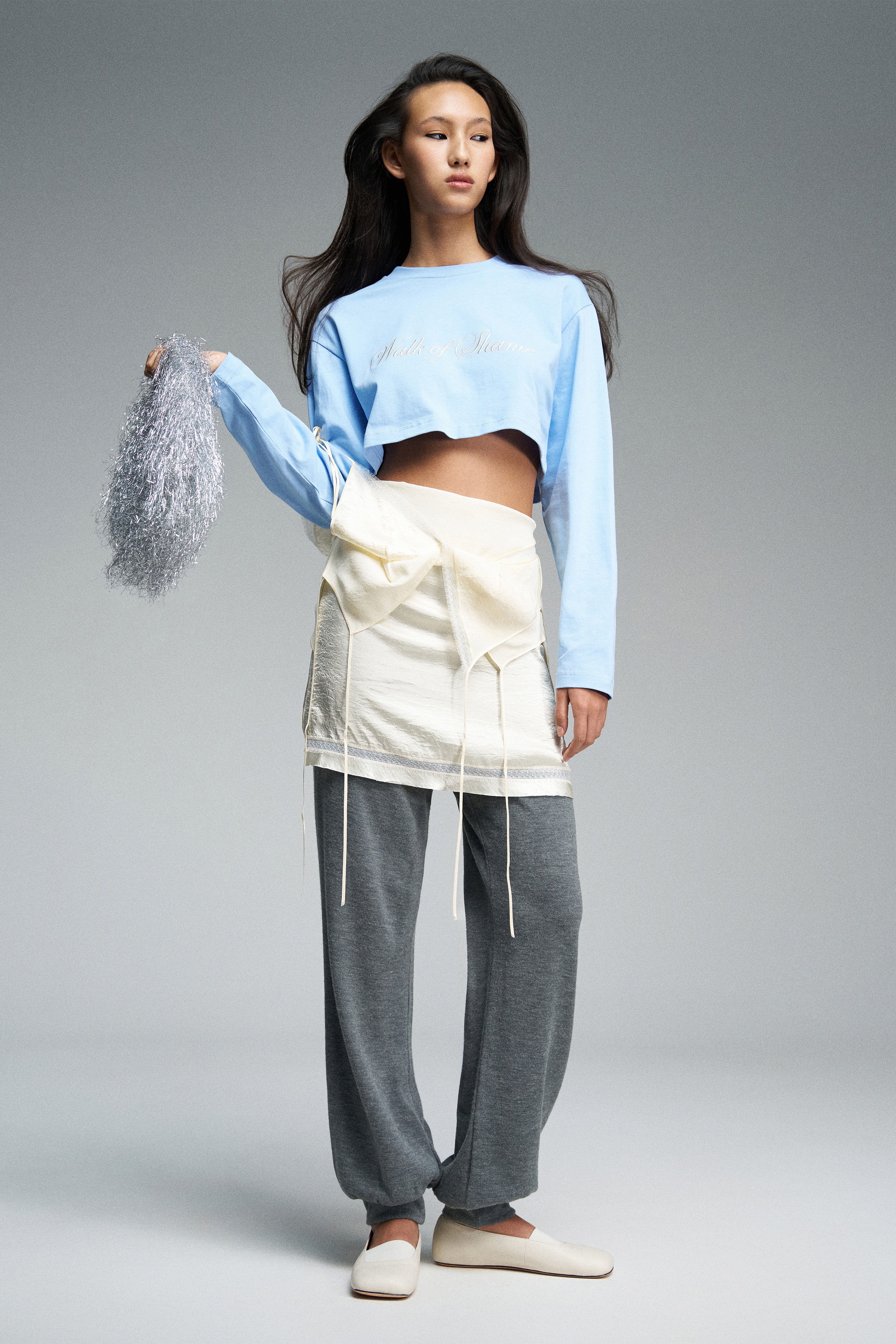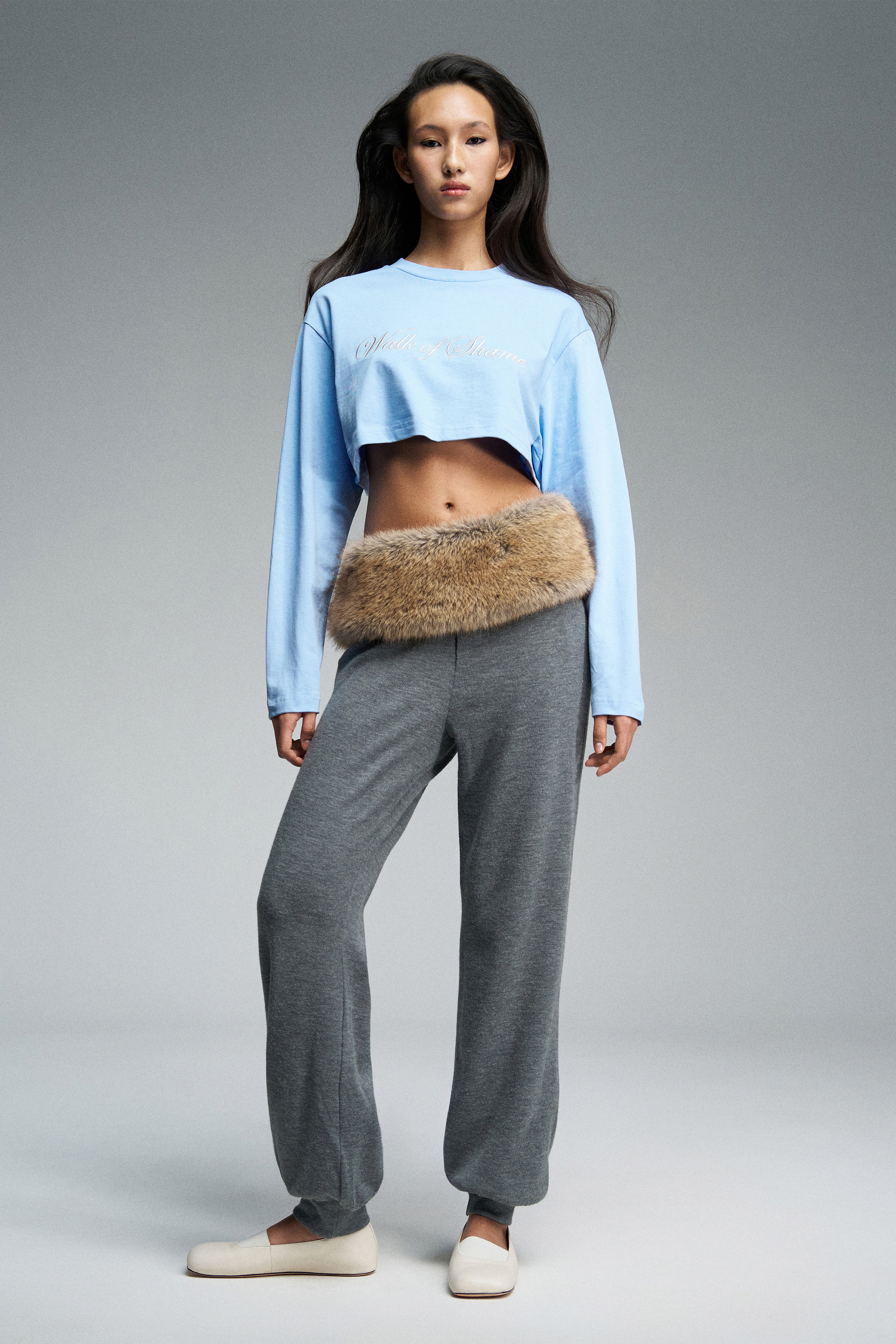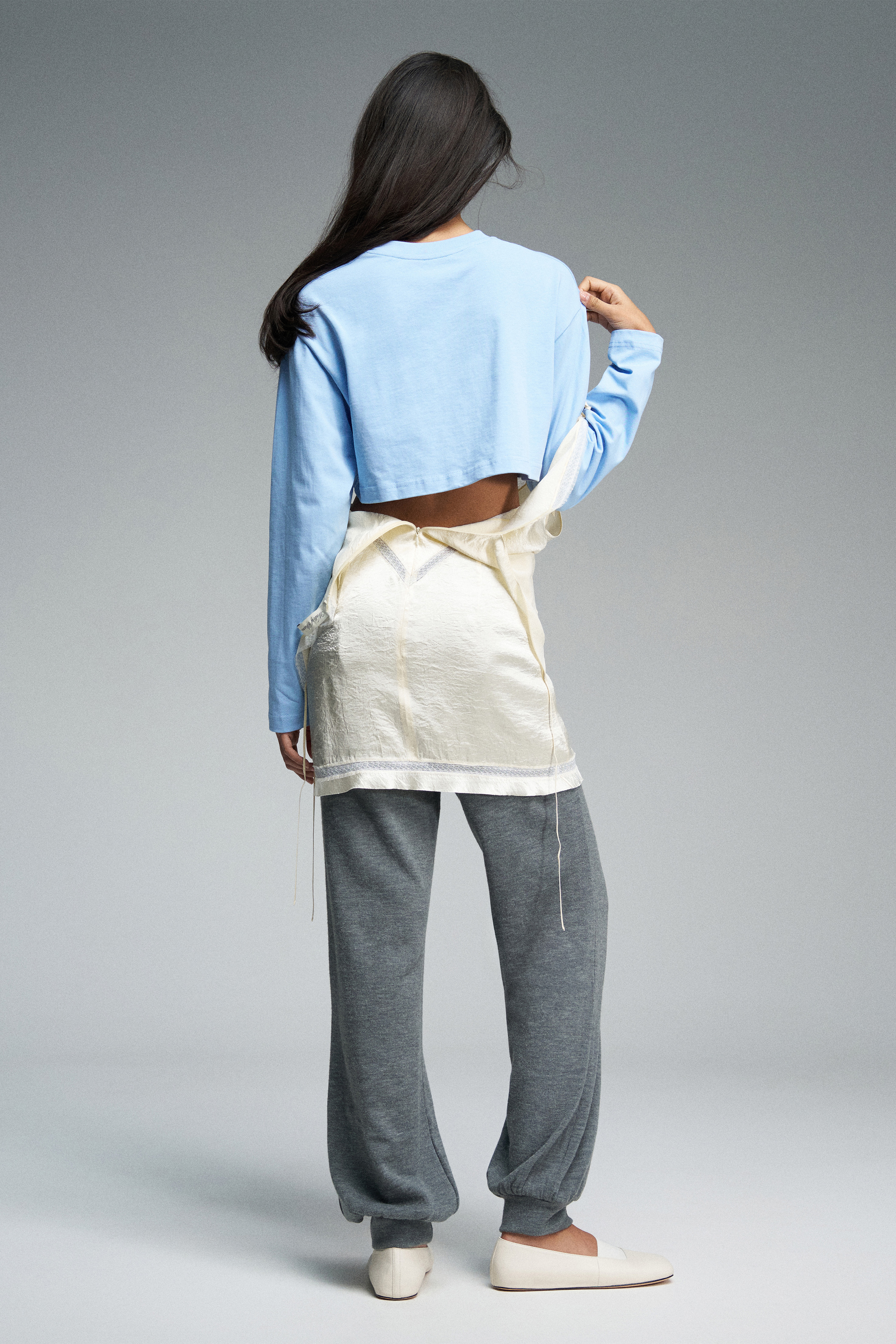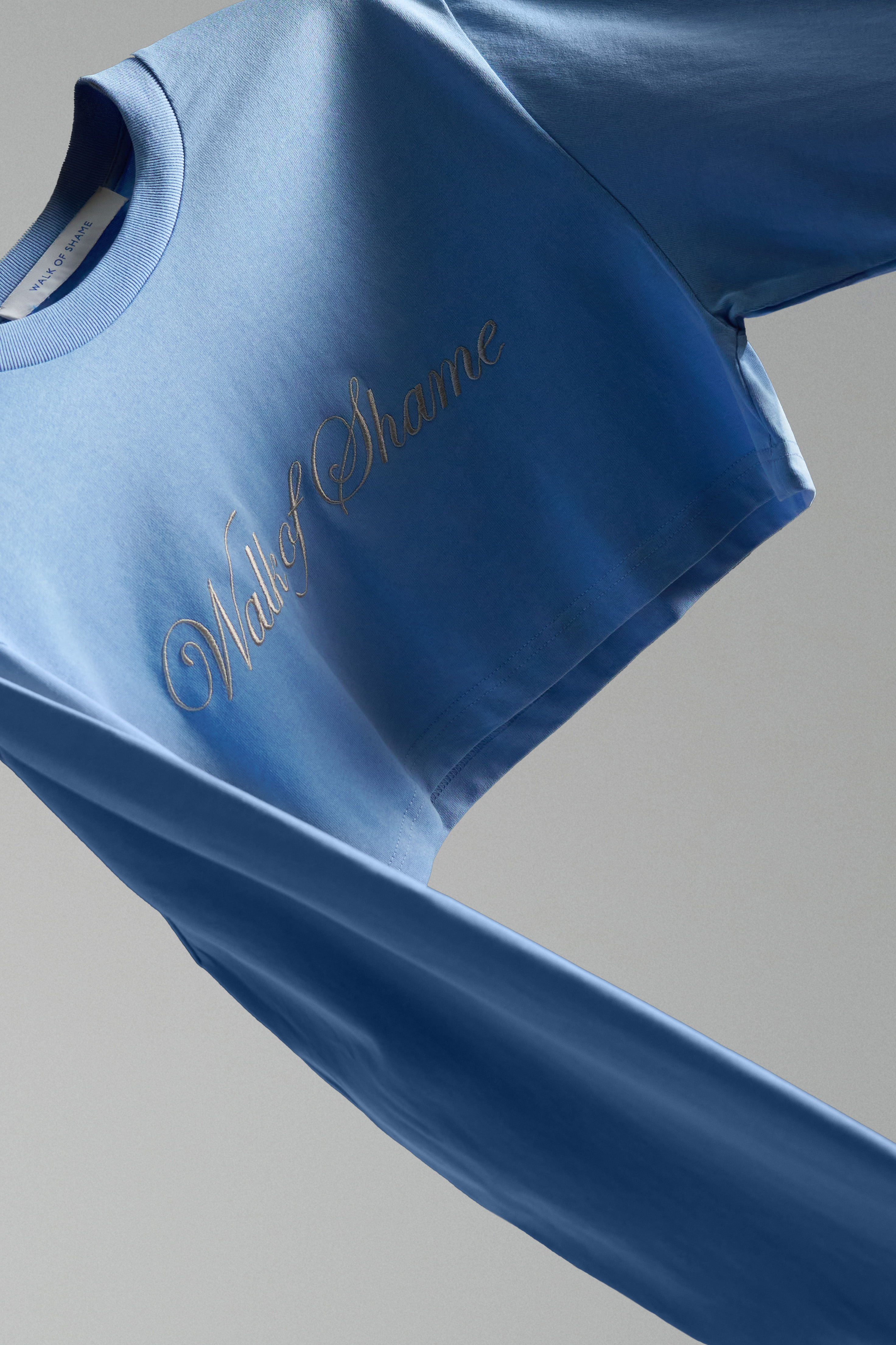 Кроп-лонгслив из португальской ткани с вышивкой логотипа бренда. Мягкий материал приятен к телу и хорошо держит форму, создавая чистый силуэт.