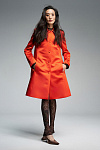 Классический statement-элемент гардероба — однобортное пальто А-силуэта черного цвета. Отложной воротник, карманы в рельефах. Изделие выполнено без боковых швов и с объёмной складкой сзади. Пальто на подкладке. Его можно носить по прямому назначению, а также надевать как платье на голое тело. Такой приём — часть ДНК Walk of Shame.