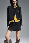 Мини-юбка из костюмной ткани с асимметричными разрезами. Особенность модели — в один из размеров интегрирована вставка из легкого шелкового шифона, контрастирующая с текстурой основной ткани. Застегивается на потайную молнию.