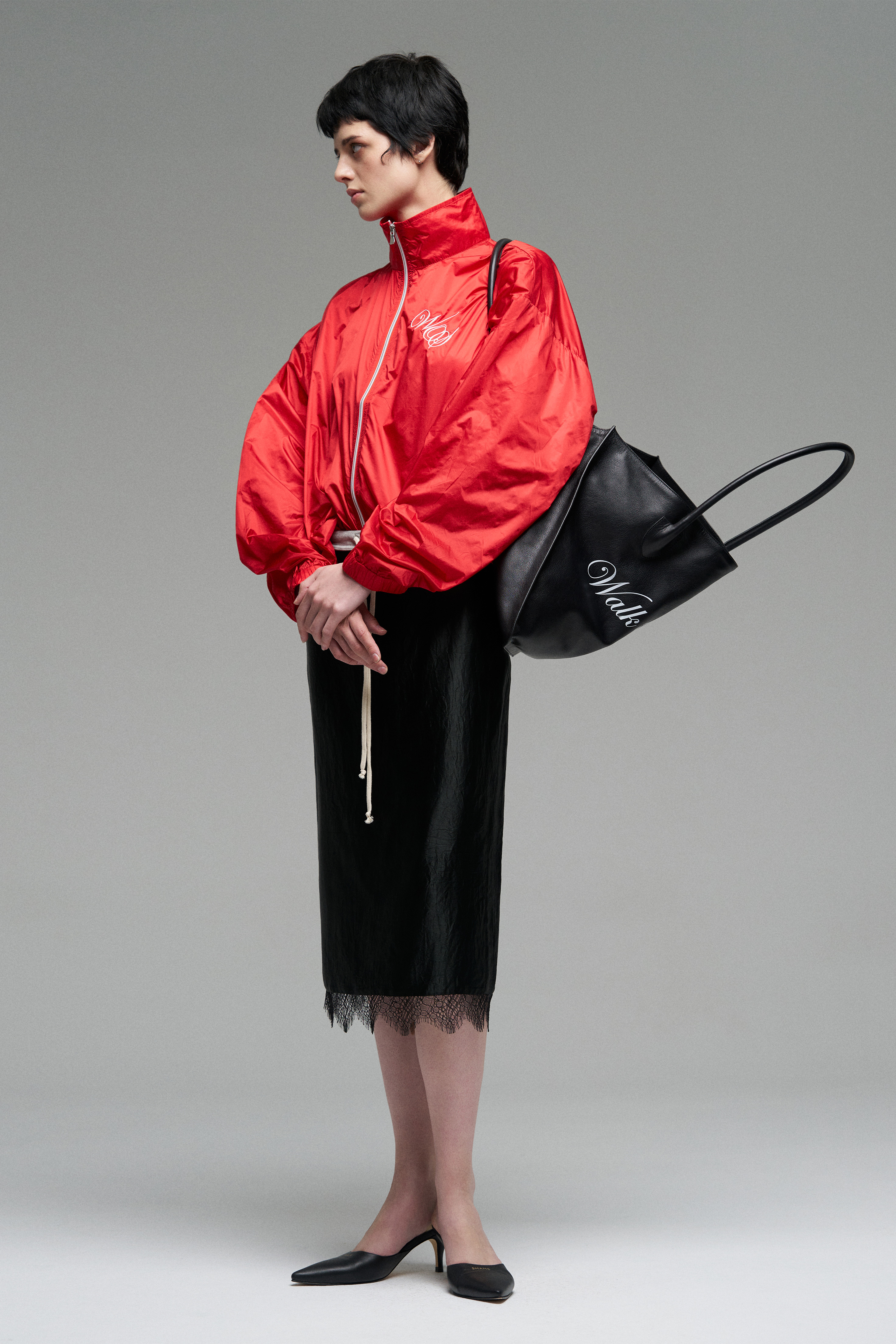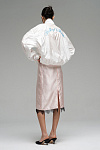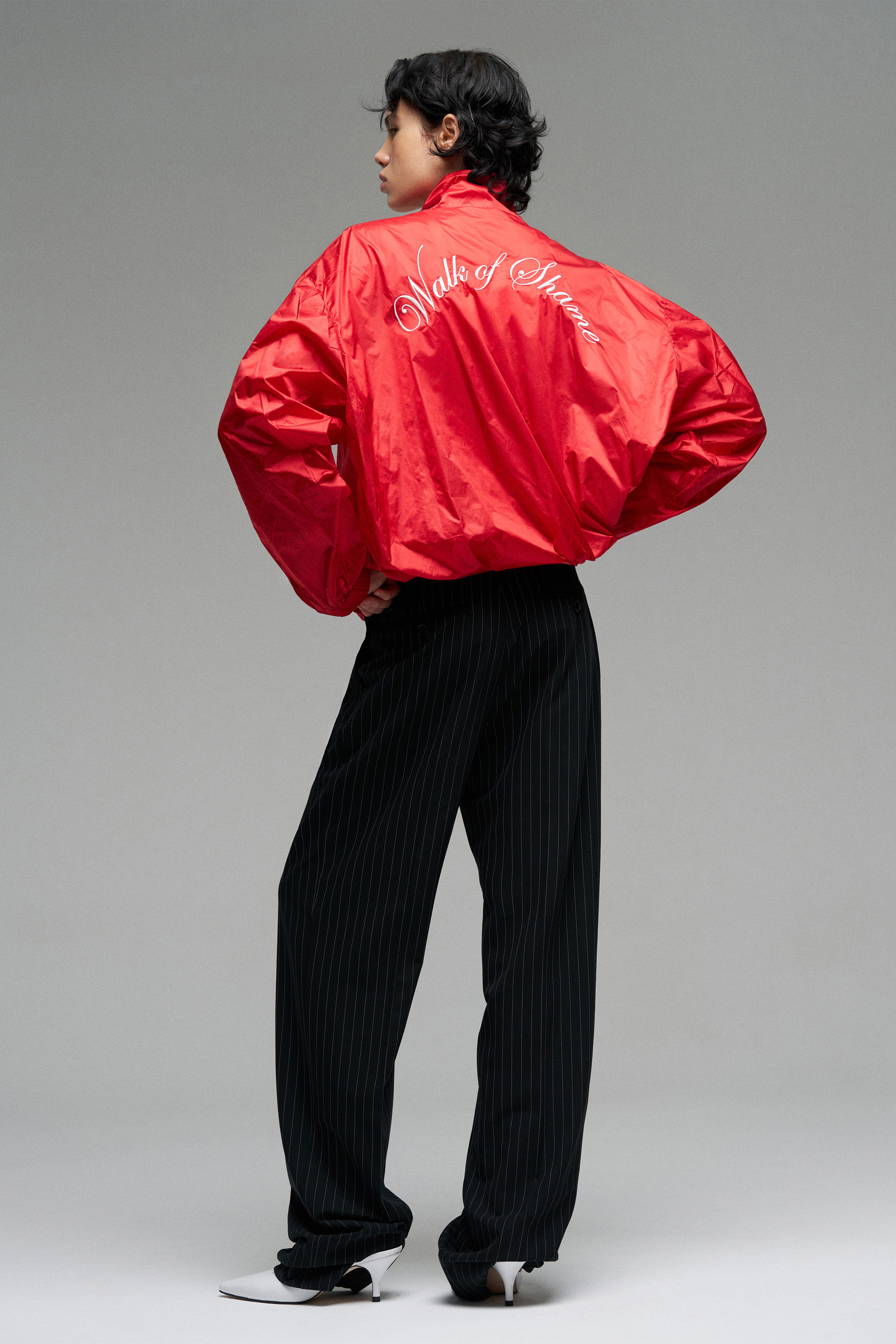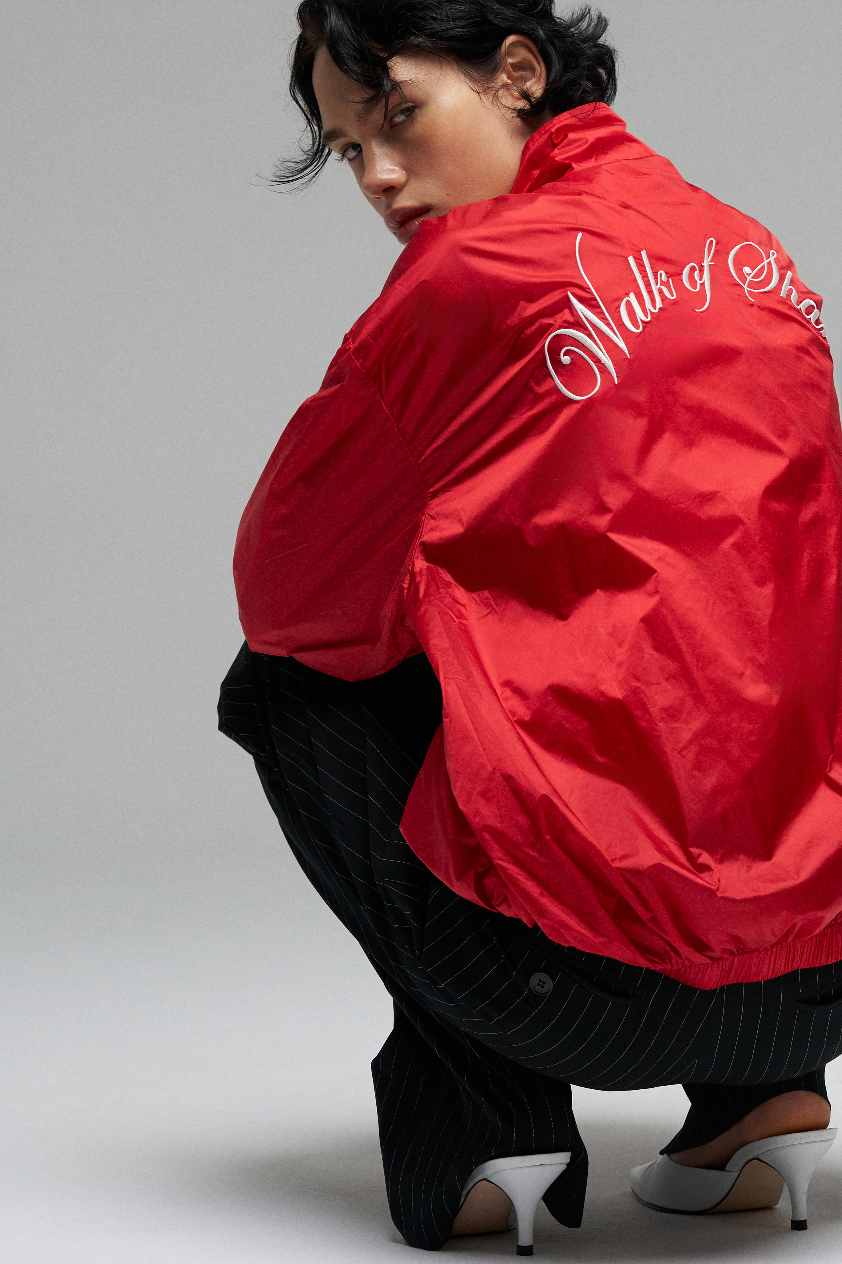 Куртка с контрастной вышивкой бренда спереди и сзади. Уже знакомая форма объёмного кроя, но в новом исполнении. Воротник-стойка на двух замковой молнии.