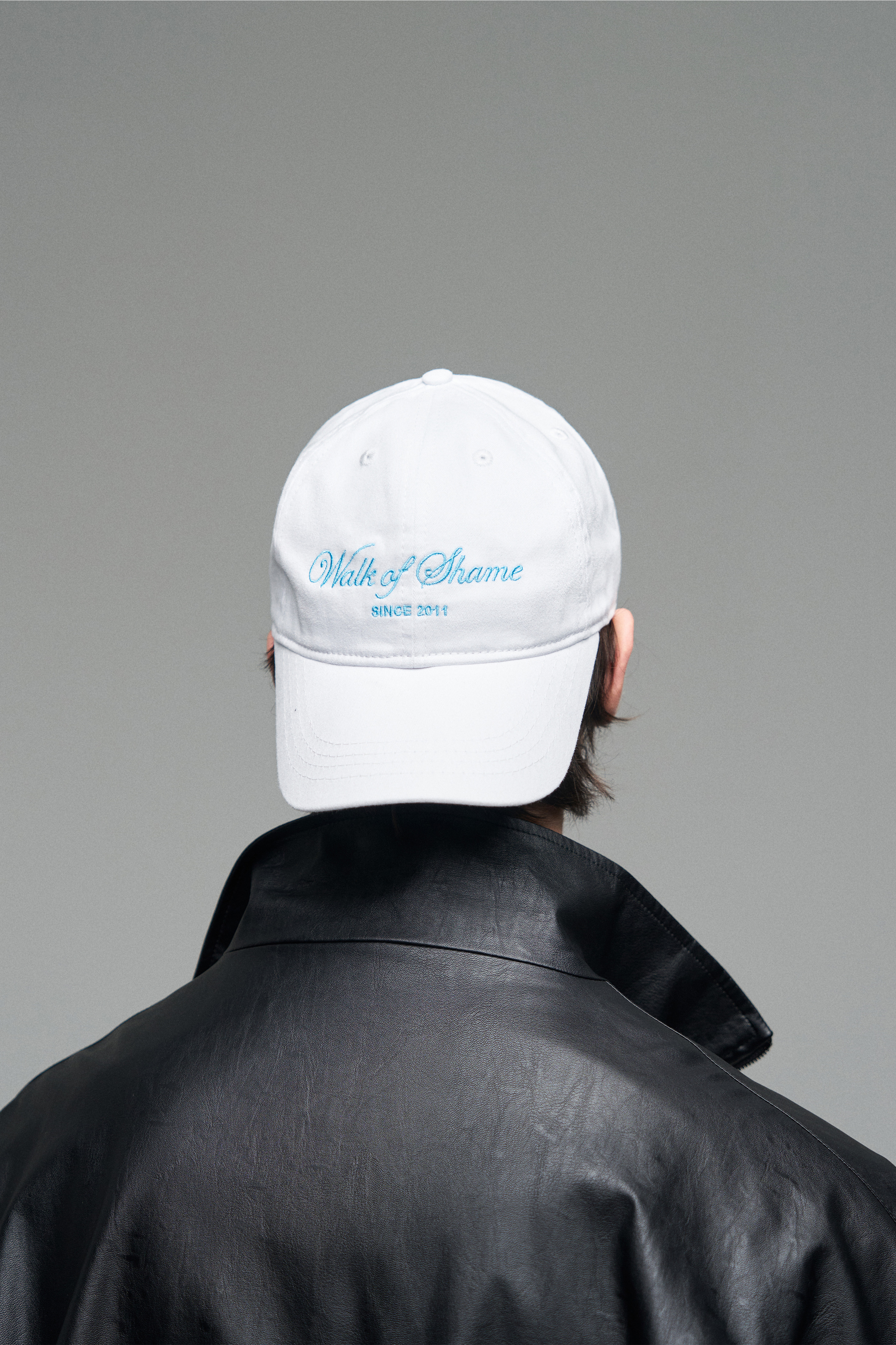 Кепка белого цвета с голубой вышивкой — Walk of Shame. Размер регулируется металлической пряжкой, изделие из 100% хлопка.