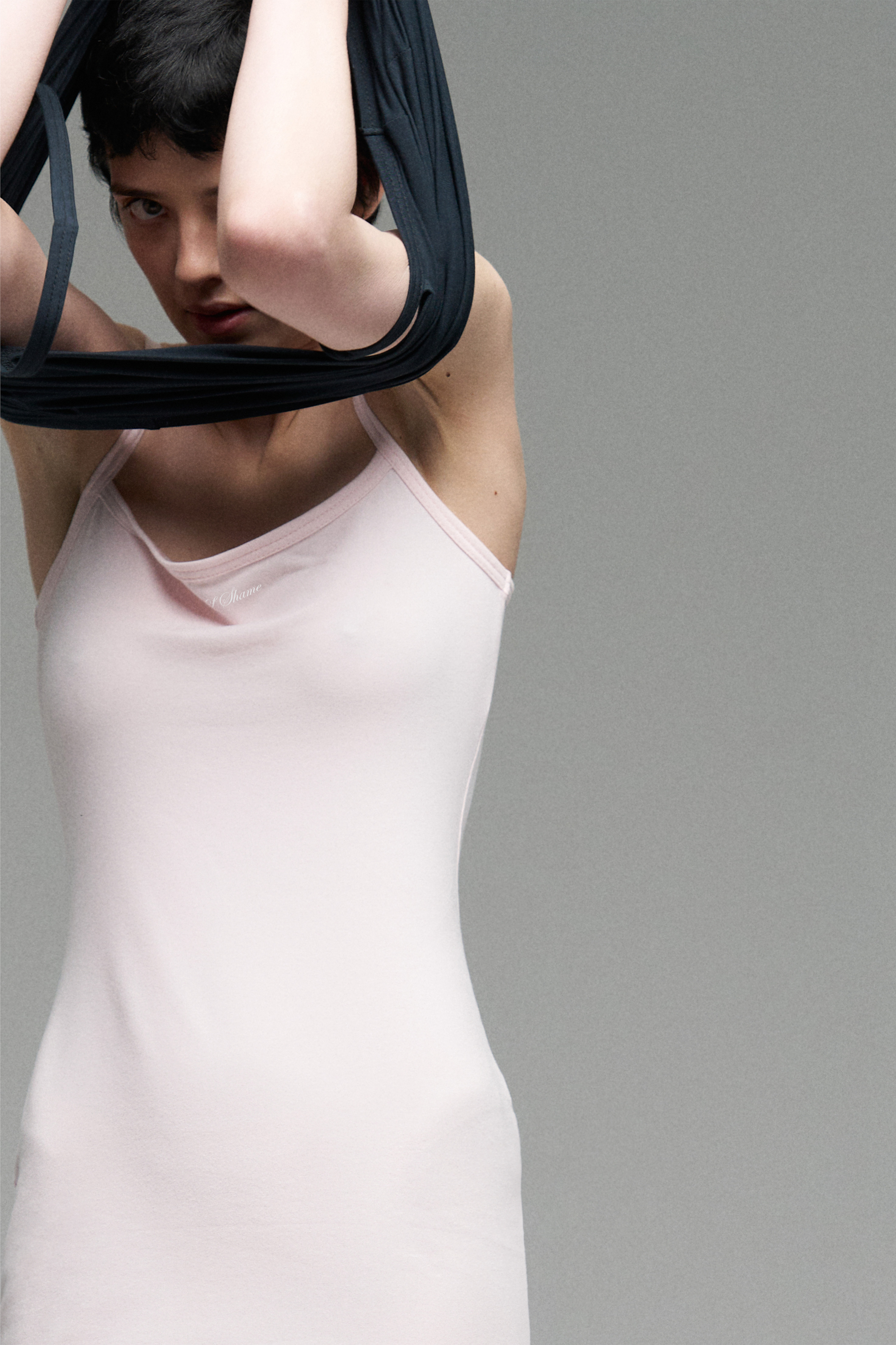 Трикотажное платье мини из гладкого вискозного трикотажа. Однослойная, без вытачек. Материал эластичный, не мнётся, плотно прилегает к телу. Длина позволяет носить как топ или как облегающее мини-платье. Нижний край обработан плоским швом — не отпечатывается под одеждой.