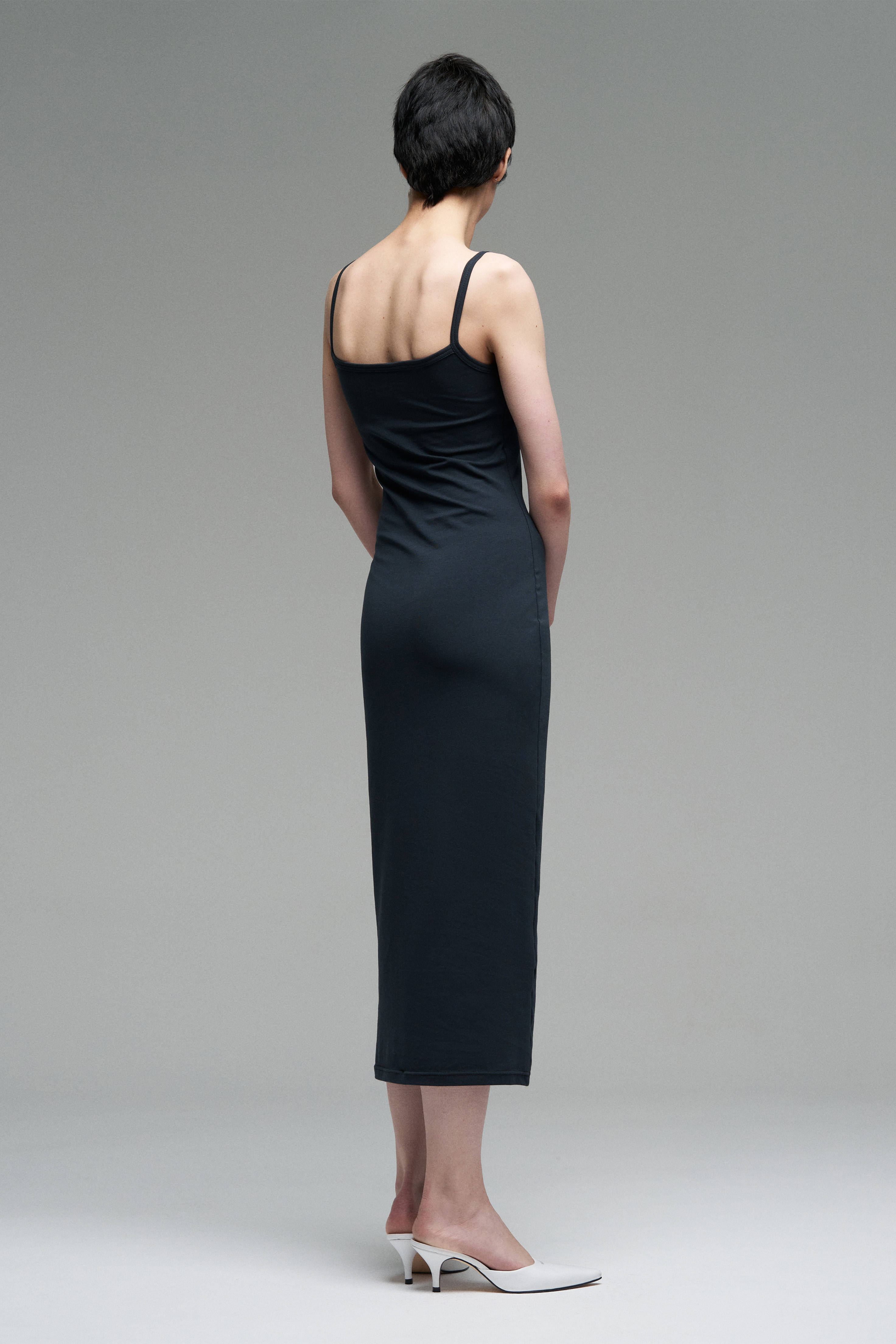 Трикотажное платье мини из гладкого вискозного трикотажа. Однослойная, без вытачек. Материал эластичный, не мнётся, плотно прилегает к телу.