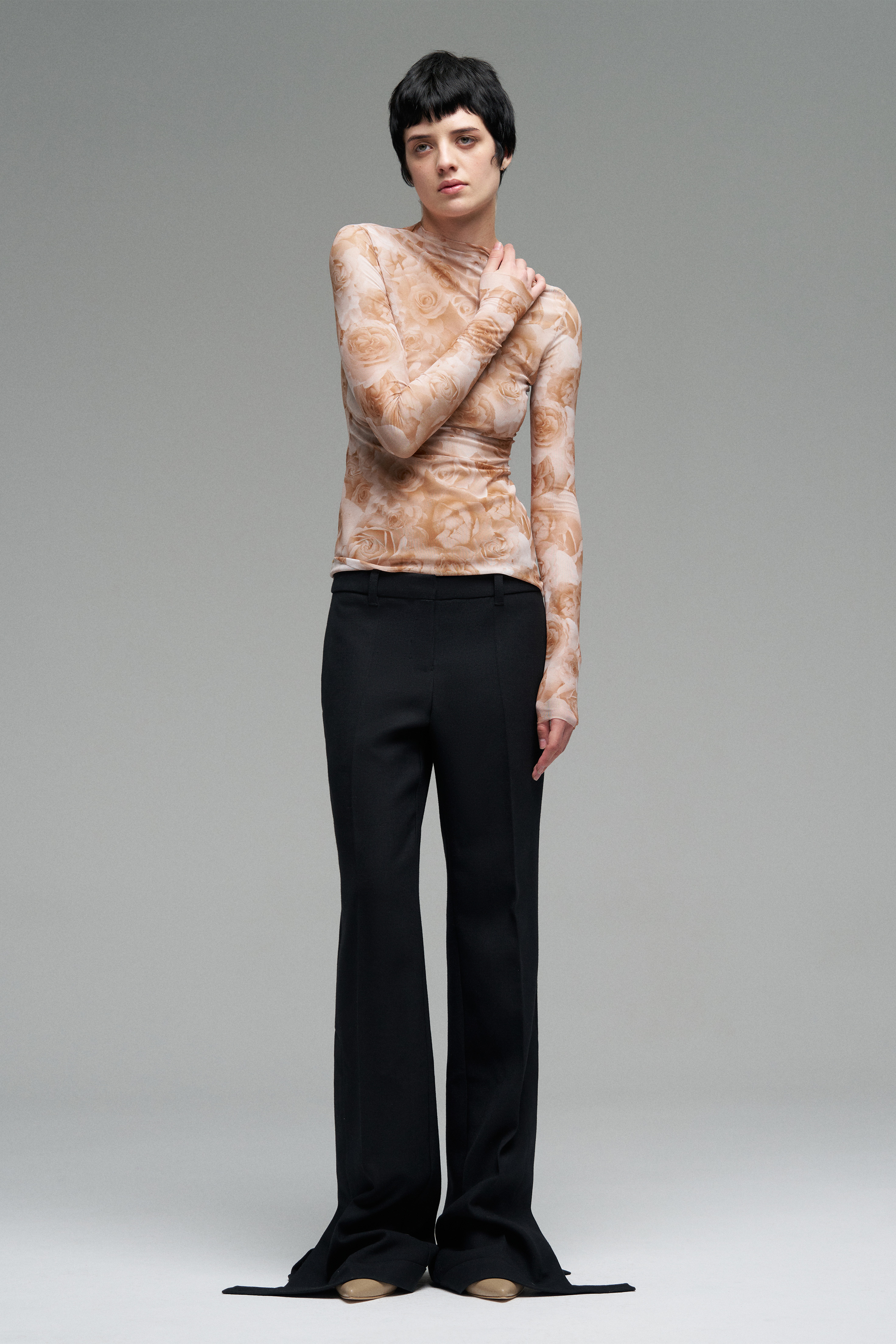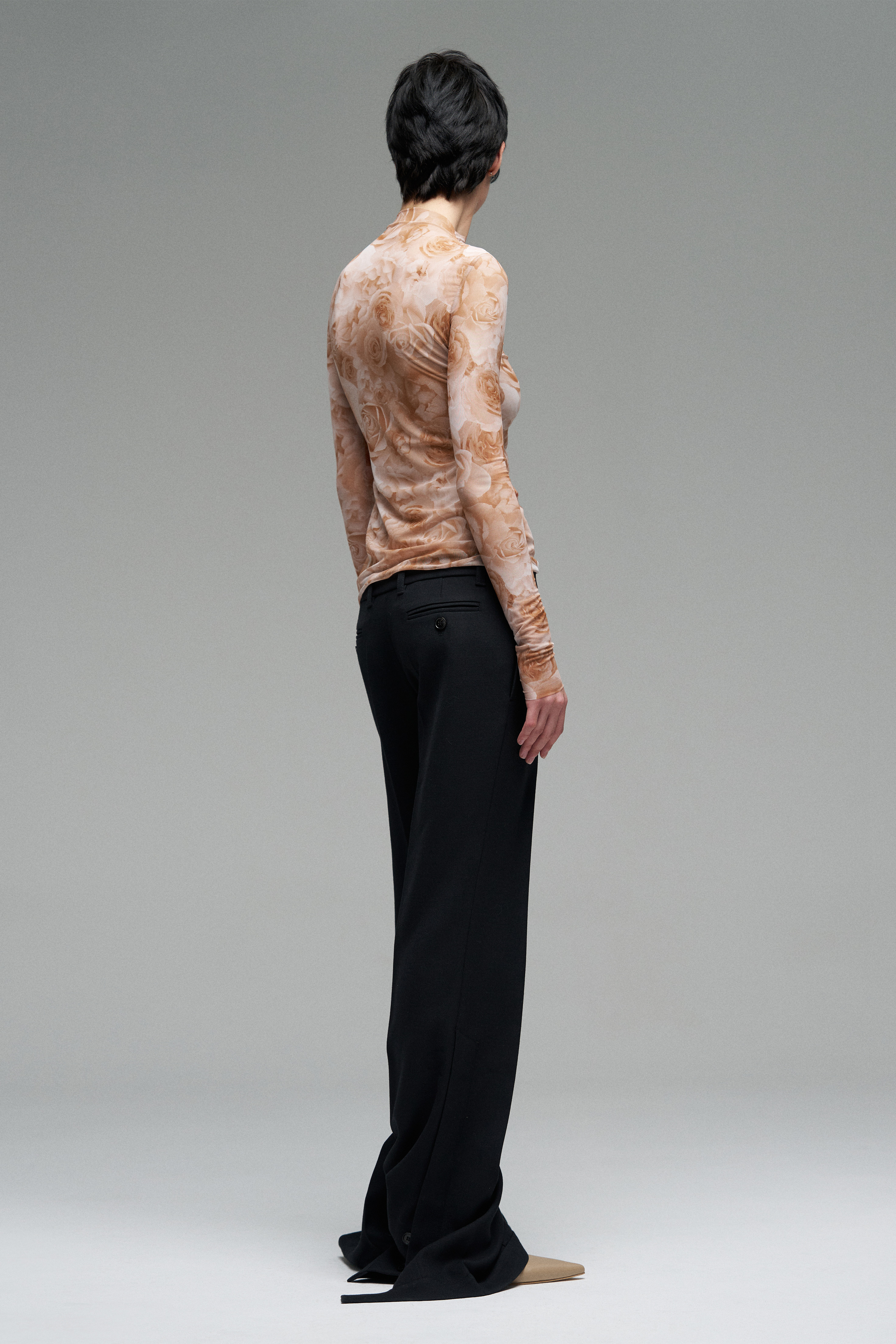 Эластичная водолазка из полупрозрачной ткани с принтом роз. Длинные рукава плотно прилегают за счёт эластичности материала. Ткань комфортно тянется и адаптируется к фигуре.