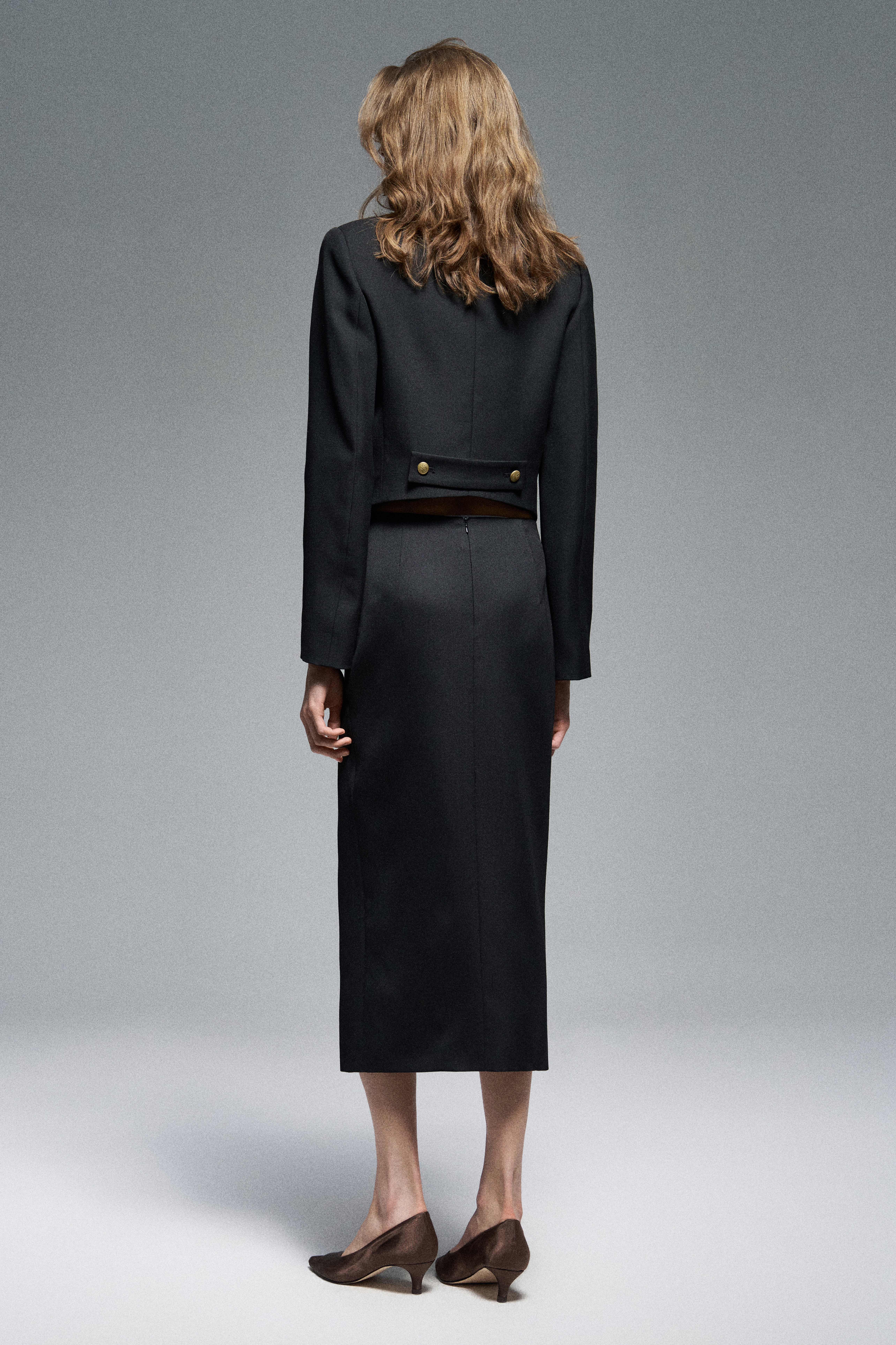 Юбка-миди из костюмной ткани с шерстью. Посадка ниже линии талии и с разрезом сбоку.