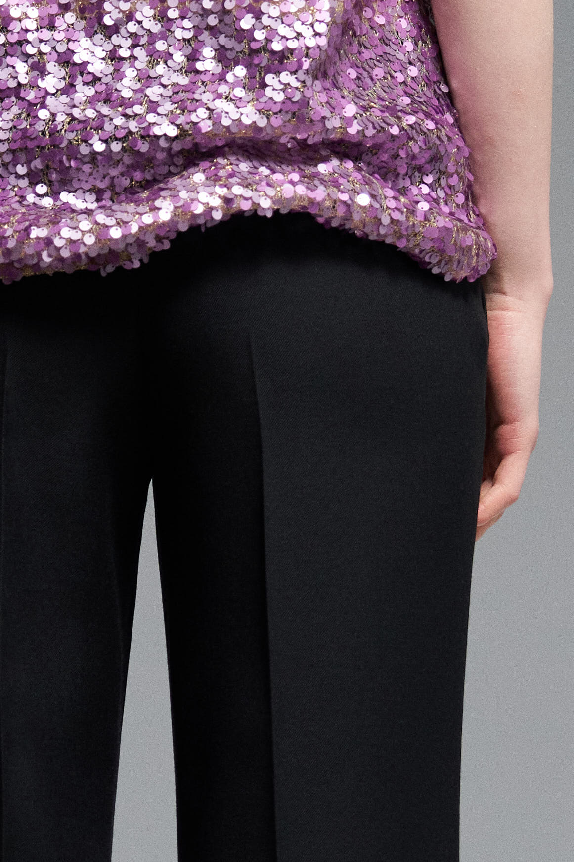 Брюки из костюмной ткани на средней посадке. Длина 7/8. Модель с карманами по бокам и дополнена двойным рядом шлевок.