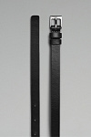 Коричневый кожаный ремень длиной 180 см с квадратной металлической пряжкой серебристого цвета.
