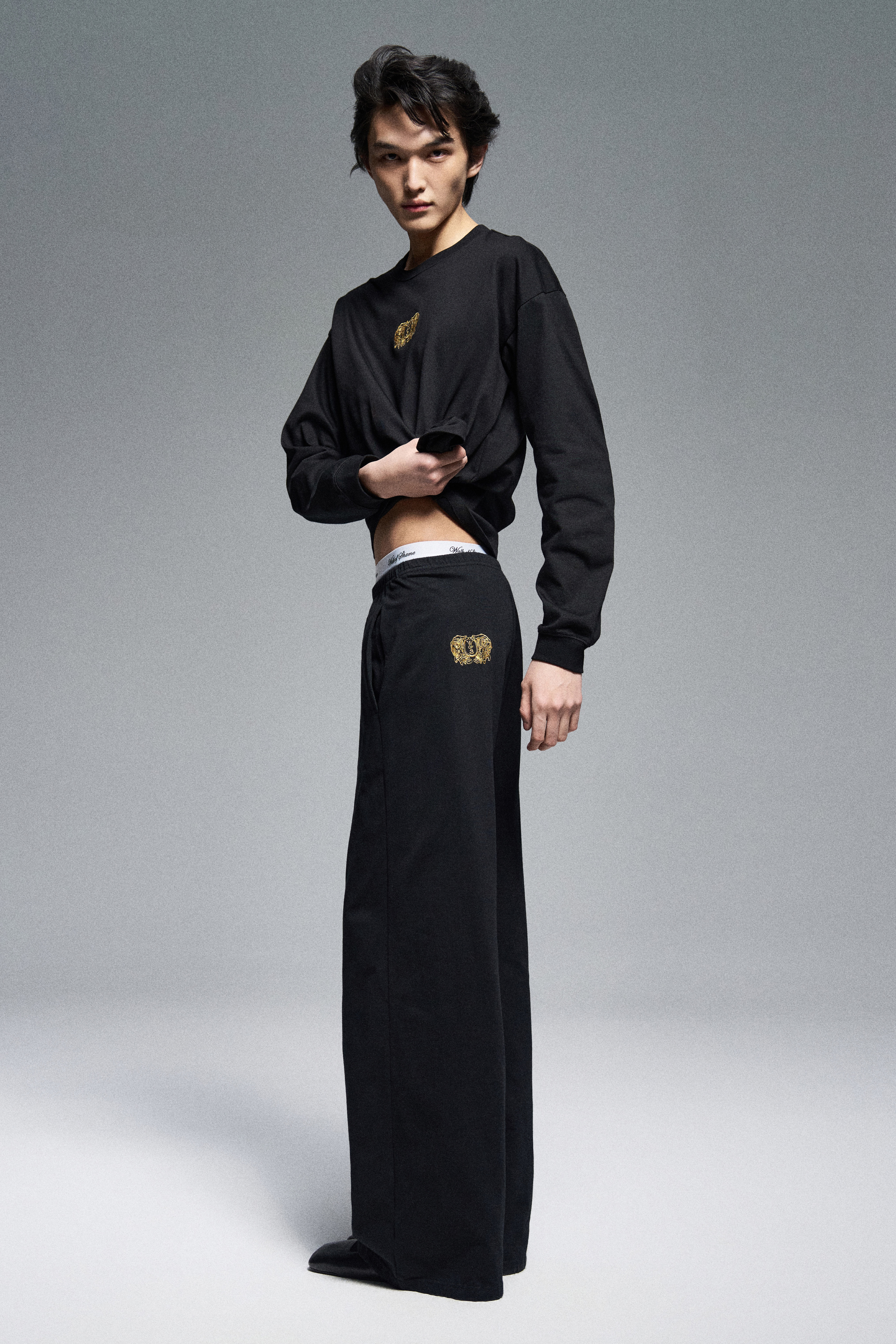 Широкие спортивные брюки прямого кроя из хлопка. Регулируемый пояс на кулиске.