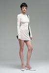 Мини-платье из полупрозрачного трикотажа. Прямой крой, на груди — шелкография с логотипом бренда.