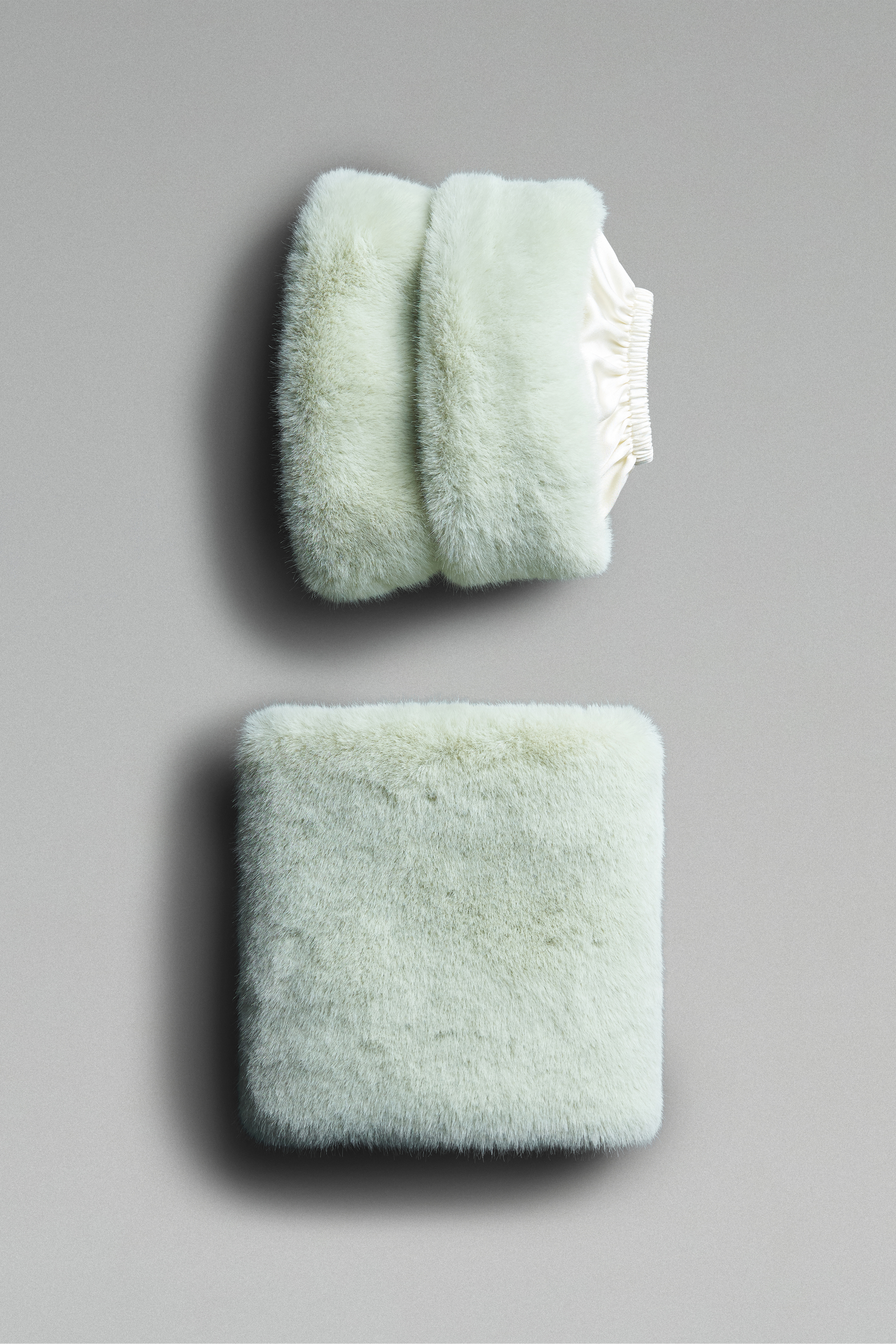 Манжеты из эко-меха стриженой норки на подкладке английского шёлка, дополнеyные эластичной резинкой.