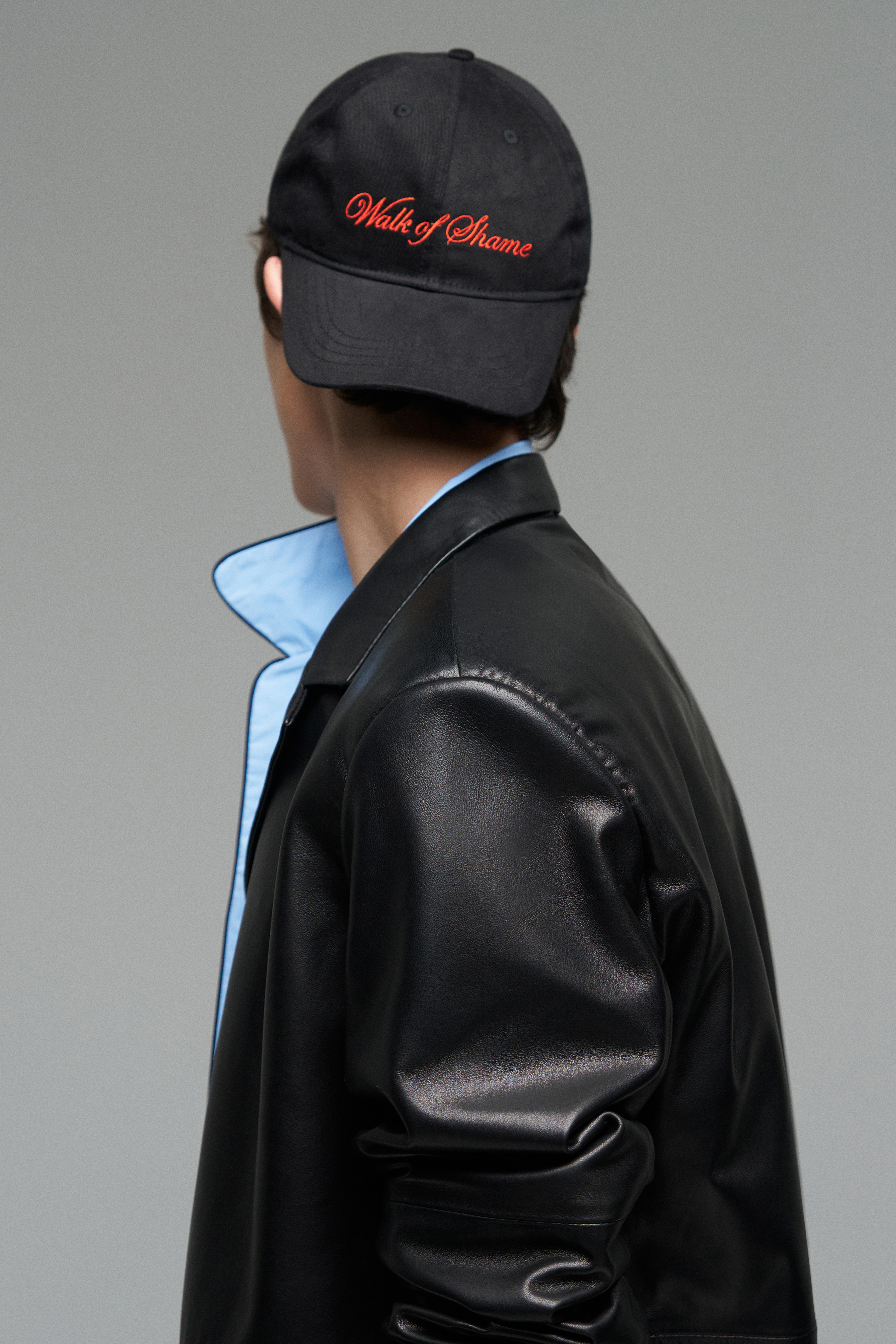Черная кепка с красной вышивкой — Walk of Shame. Размер регулируется металлической пряжкой, изделие из 100% хлопка.