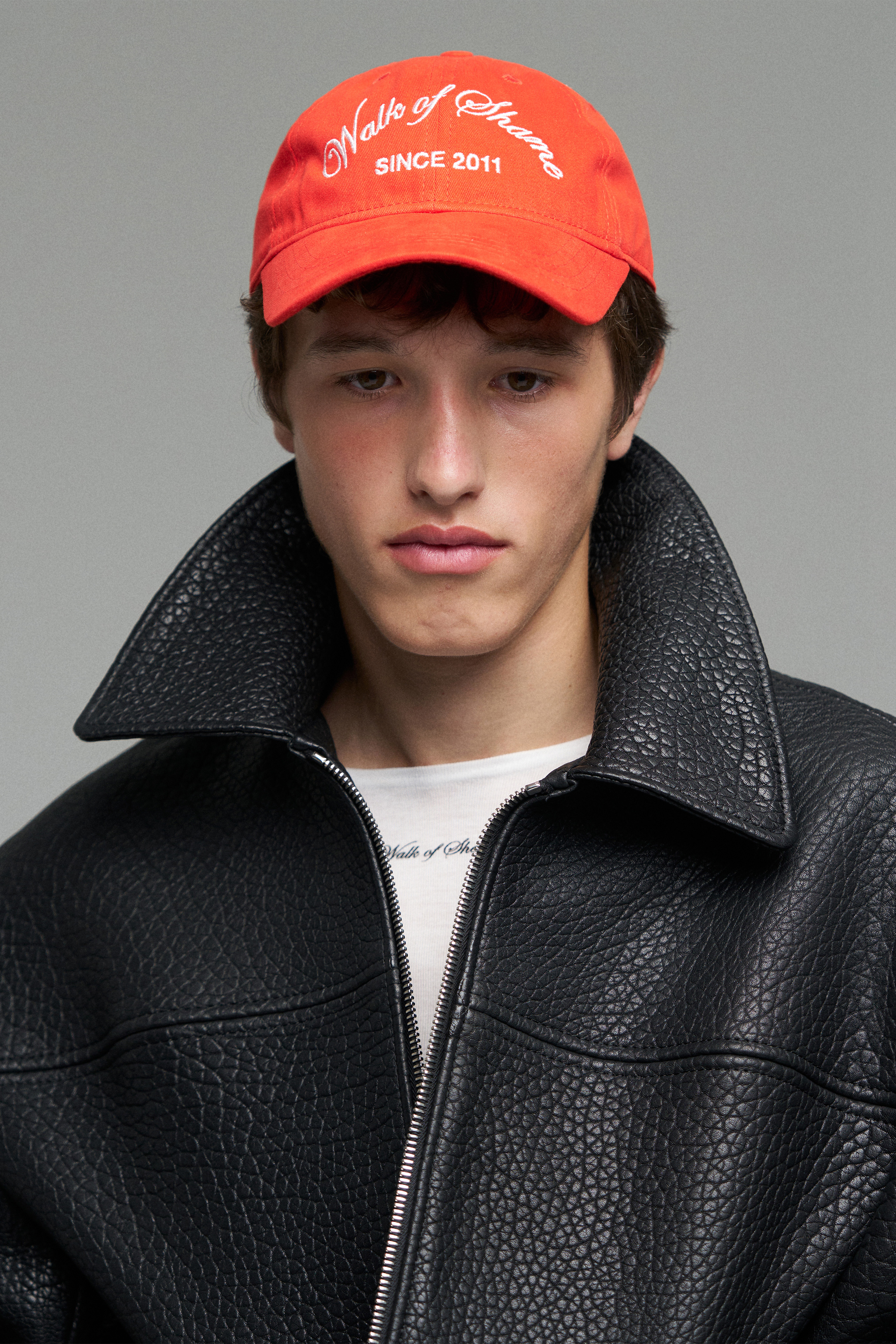 Красная кепка с белой вышивкой Walk of Shame и датой основания бренда. Размер регулируется металлической пряжкой. Плотный хлопок.