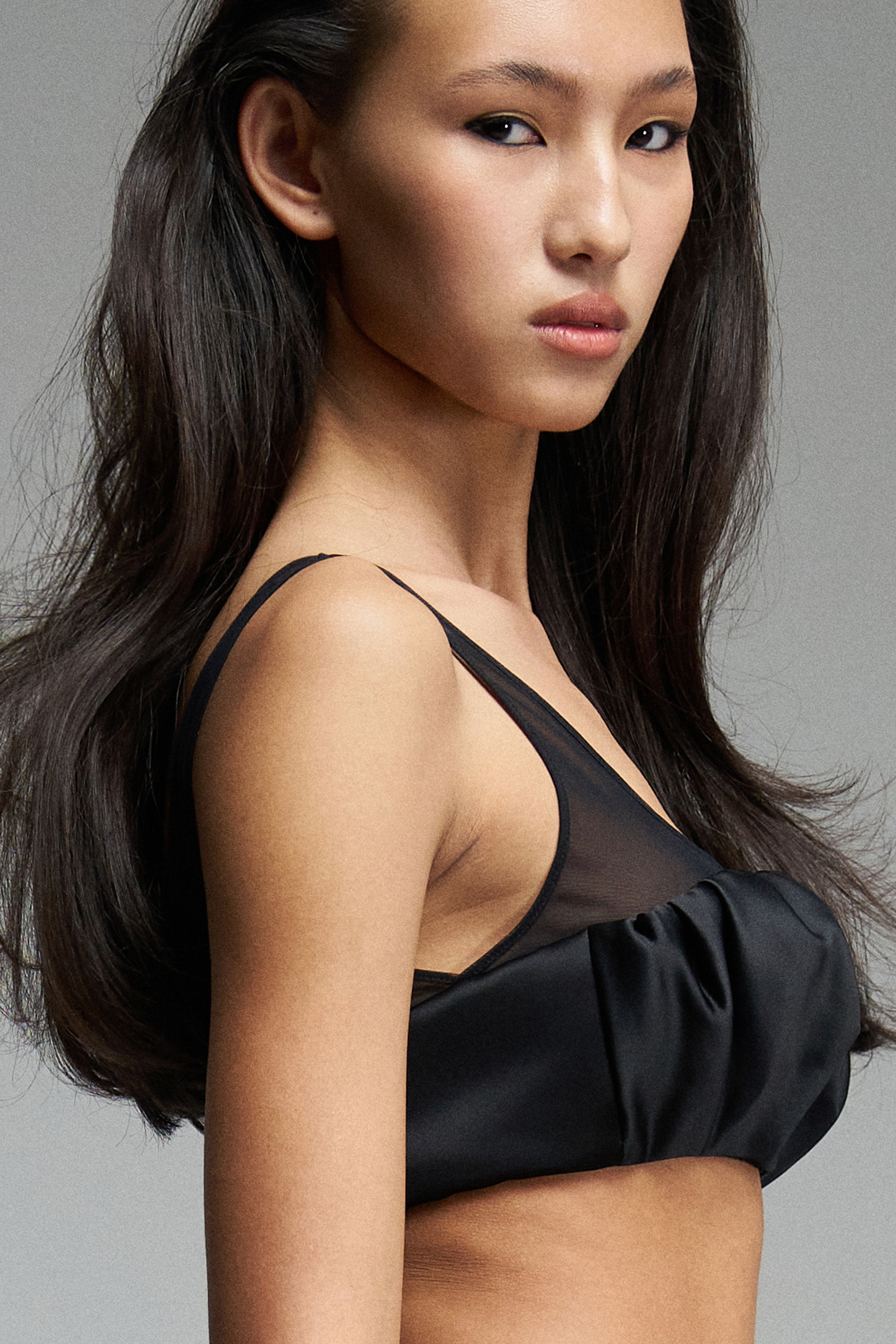 Бра в форме ракушки из эластичной сетки и атласа. Застёжка на крючках с петлями.