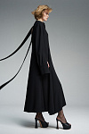Платье миди с лёгким приталенным силуэтом из шерстяного крепа. Воротник спереди имеет классическую рубашечную форму, а сзади переходит в длинные выразительные ленты, которые можно использовать как шарф. По спинке — V-образный вырез и репсовая тесьма с логотипом бренда.