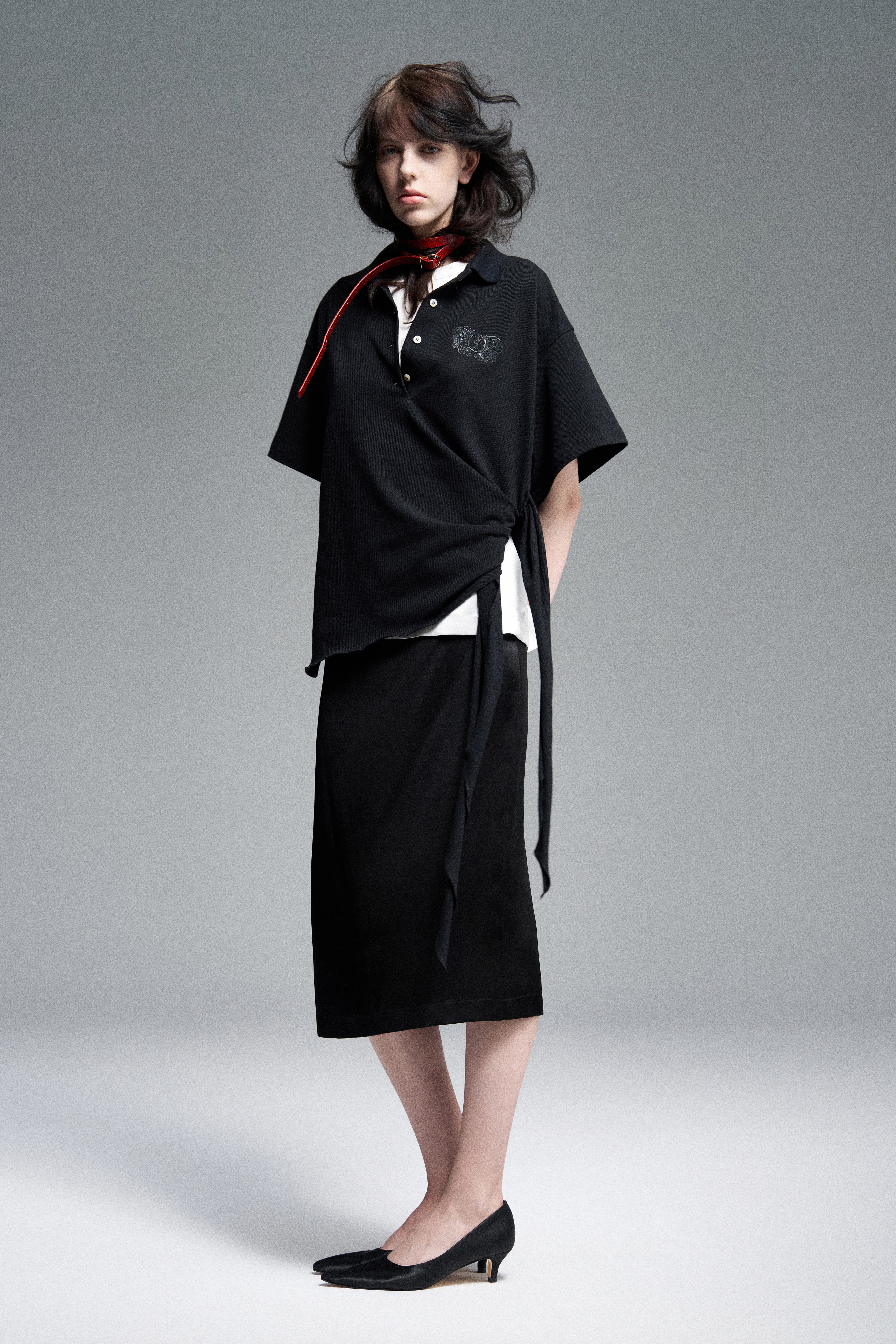Юбка миди из натурального английского шёлка черного цвета. Изделие на бельевой резинке, дополненное спереди декоративной розой. Сзади — шлица и скрытая застёжка на молнию. Можно носить как самостоятельно, так и в качестве второго слоя под платье или юбку.