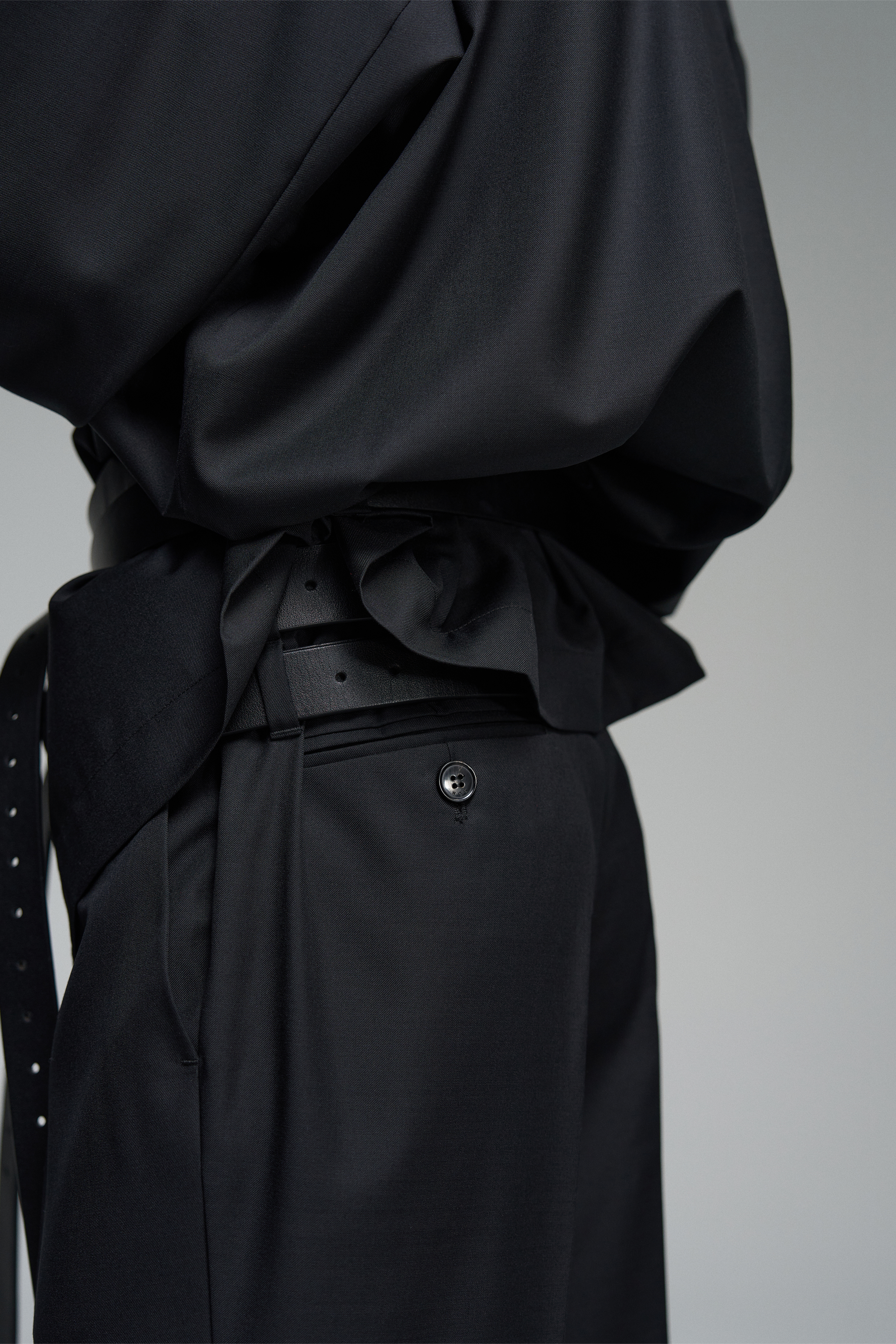 Рубашка прямого кроя с двойным рядом шлёвок. Скрытая застёжка на пуговицы. На спинке — репсовая лента с логотипом бренда.