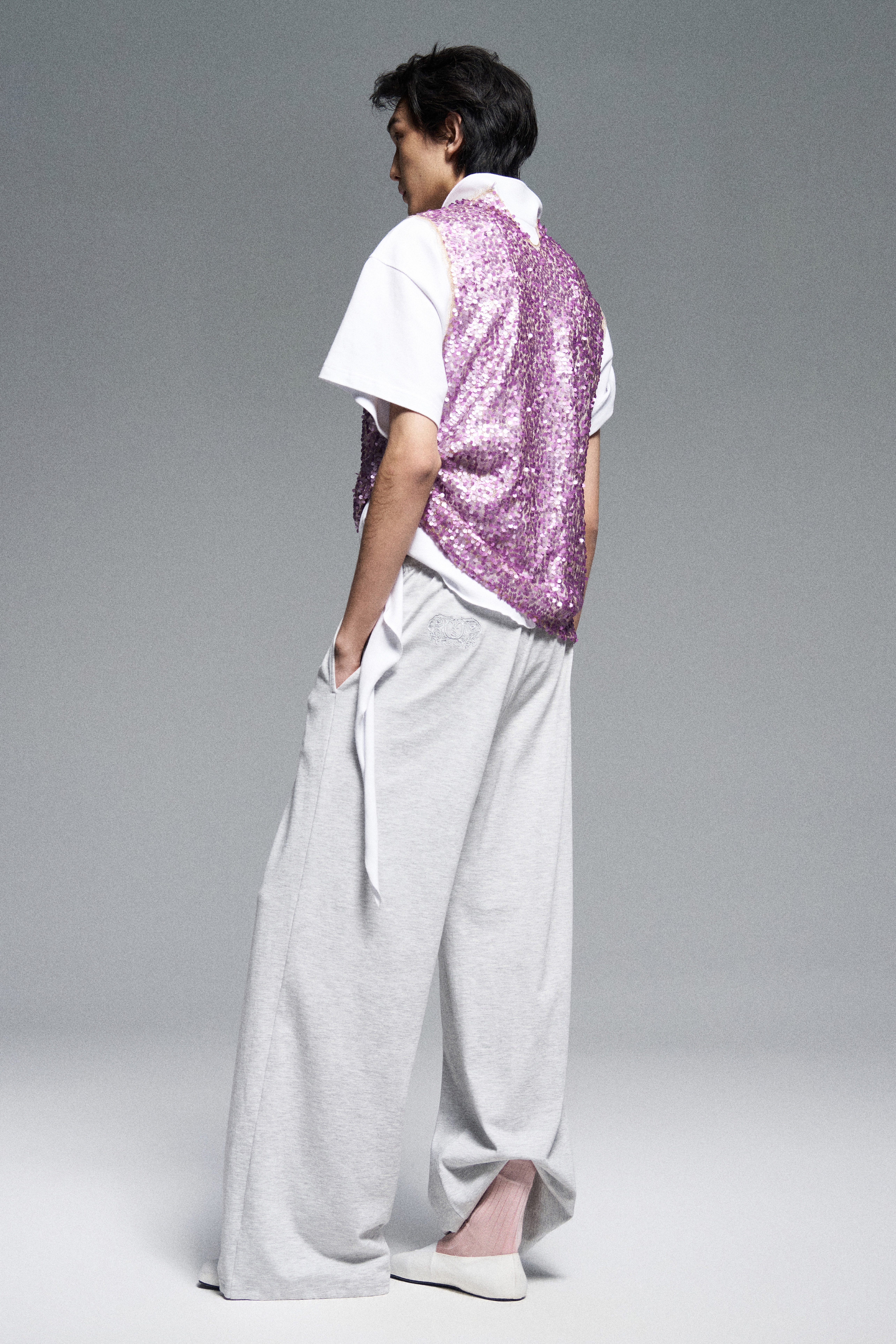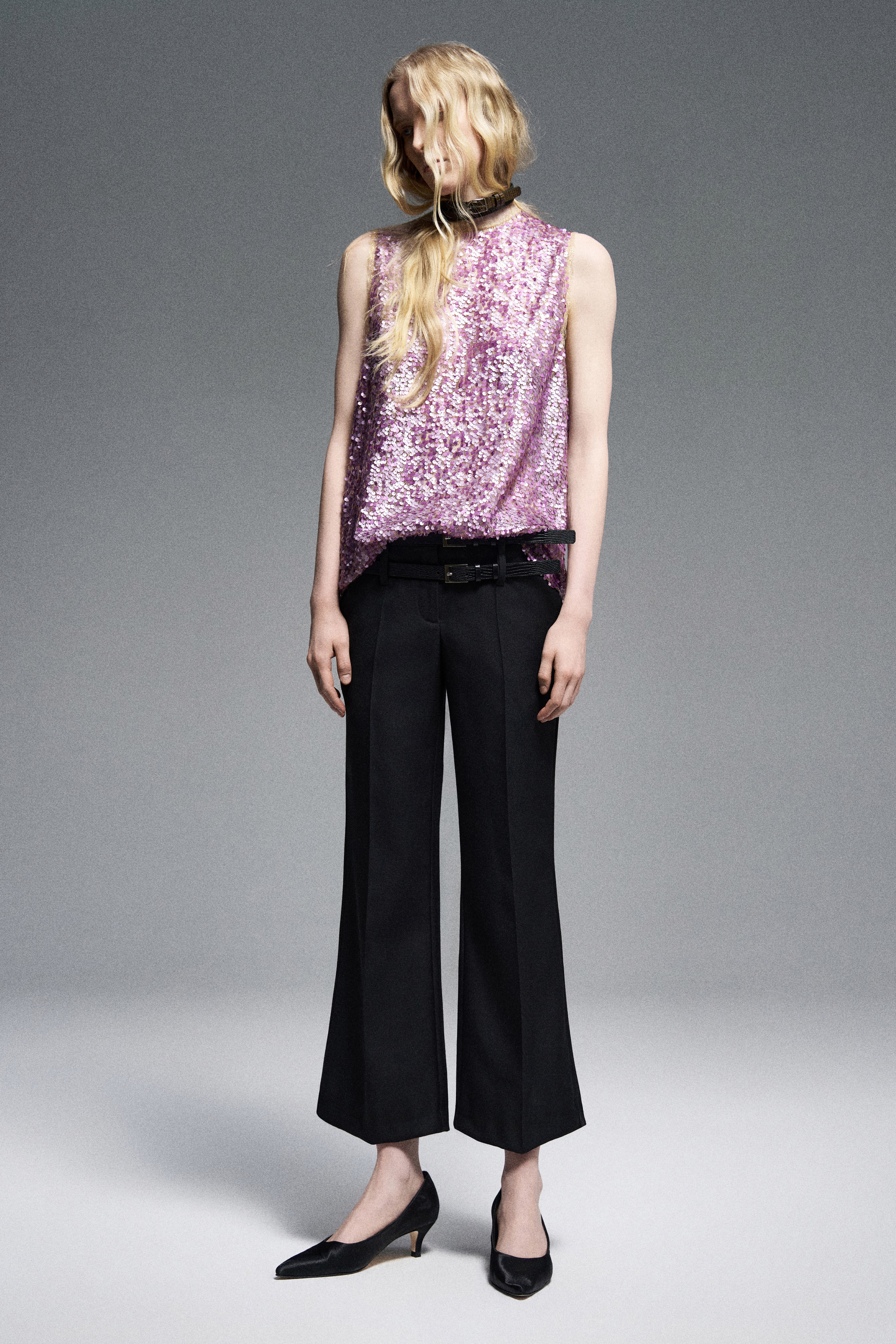 Топ из невесомых пайеток свободного кроя. Застёжка сзади на скрытые пуговицы. Деликатно ощущается на теле. Не мнется и не требует глажки.