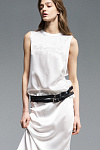 Топ из натурального английского шёлка свободного кроя. По воротнику и рукавам — кант. Застёжка сзади на скрытые пуговицы. Топ декорирован вышивкой бренда в тон изделия.