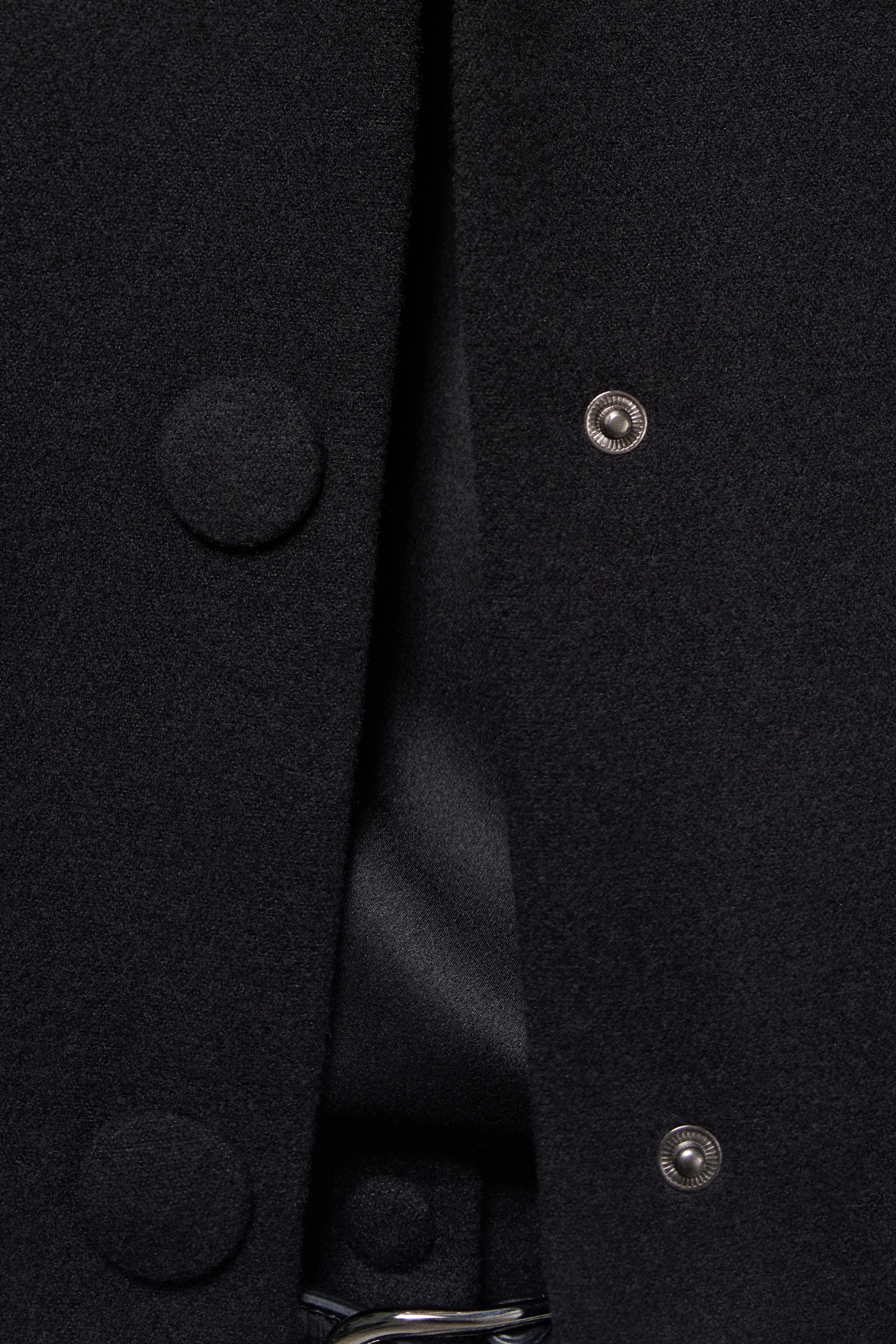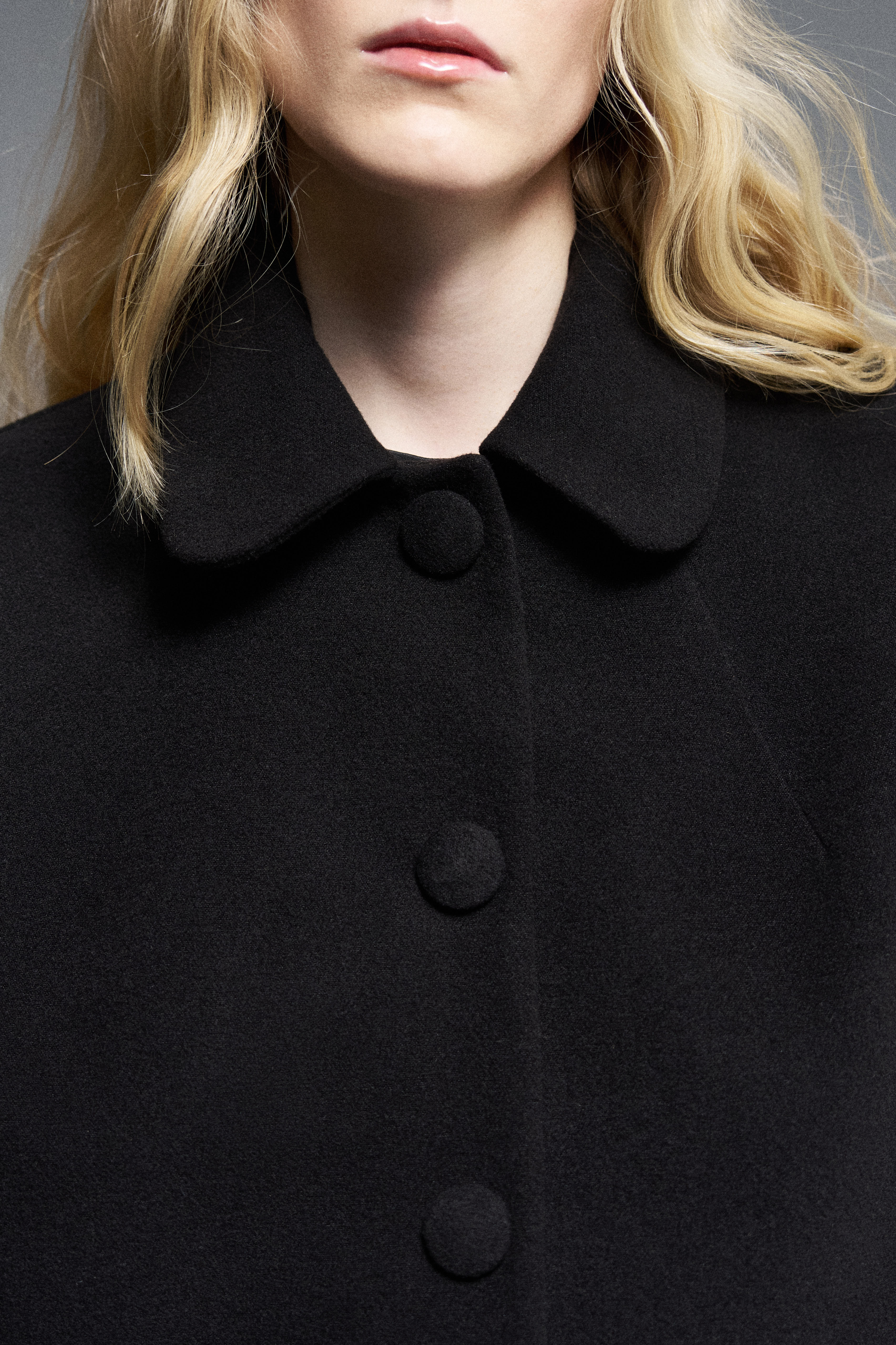 Объемная куртка из мягкого флиса силуэта «bubble». Декоративные обтяжные кнопки в тон с внешним видом пуговиц. Застежка на скрытые внутрь кнопки. Воротник «Питер Пен». Модель имеет карманы в боковых швах.