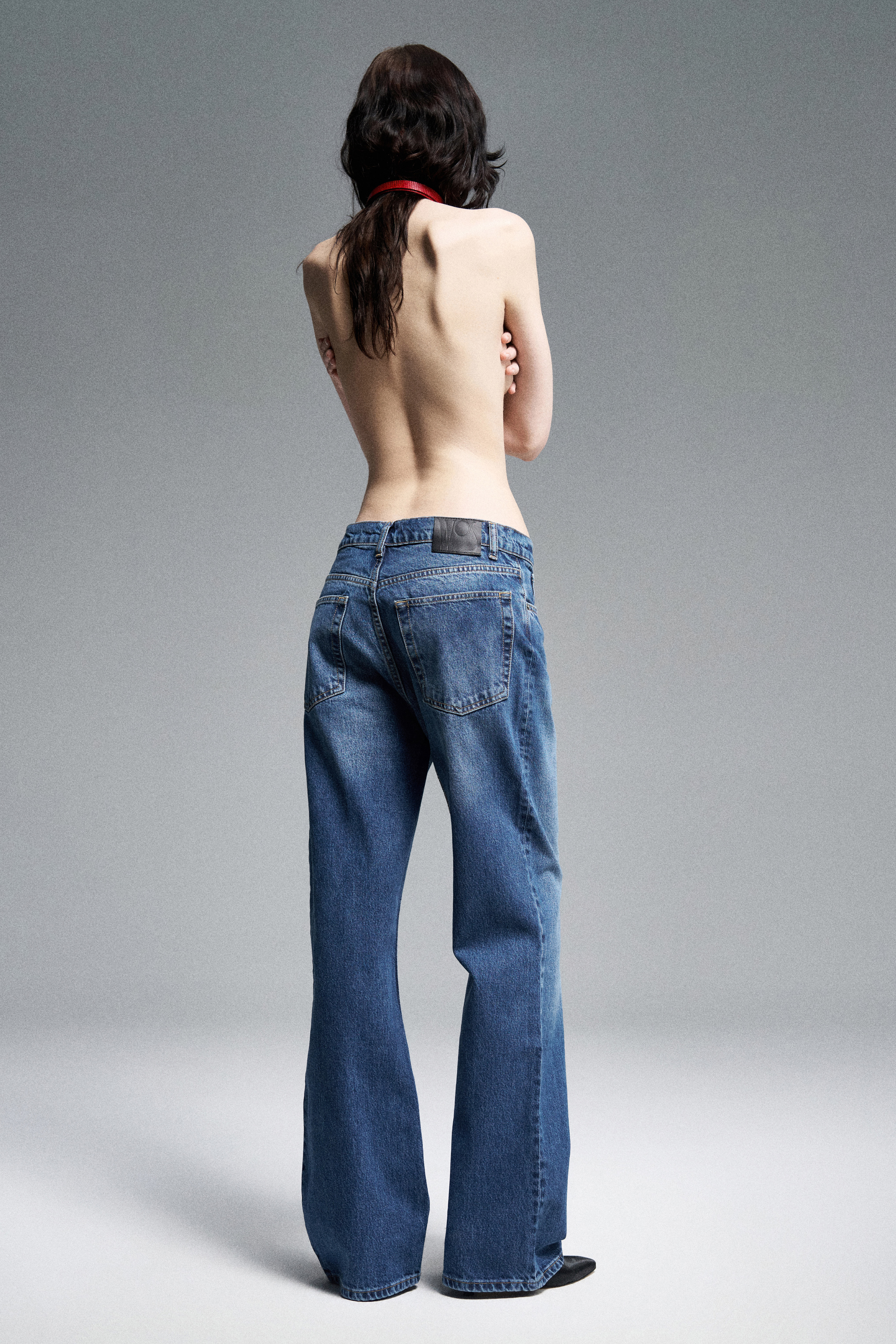 Прямые джинсы свободного кроя со средней посадкой. Пять карманов. Застежка на молнию и металлическую брендированную пуговицу.