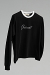 Лонгслив свободного кроя, с круглым вырезом контрастного цвета. Изготовлен из хлопка и украшен надписью, выполненной из страз.