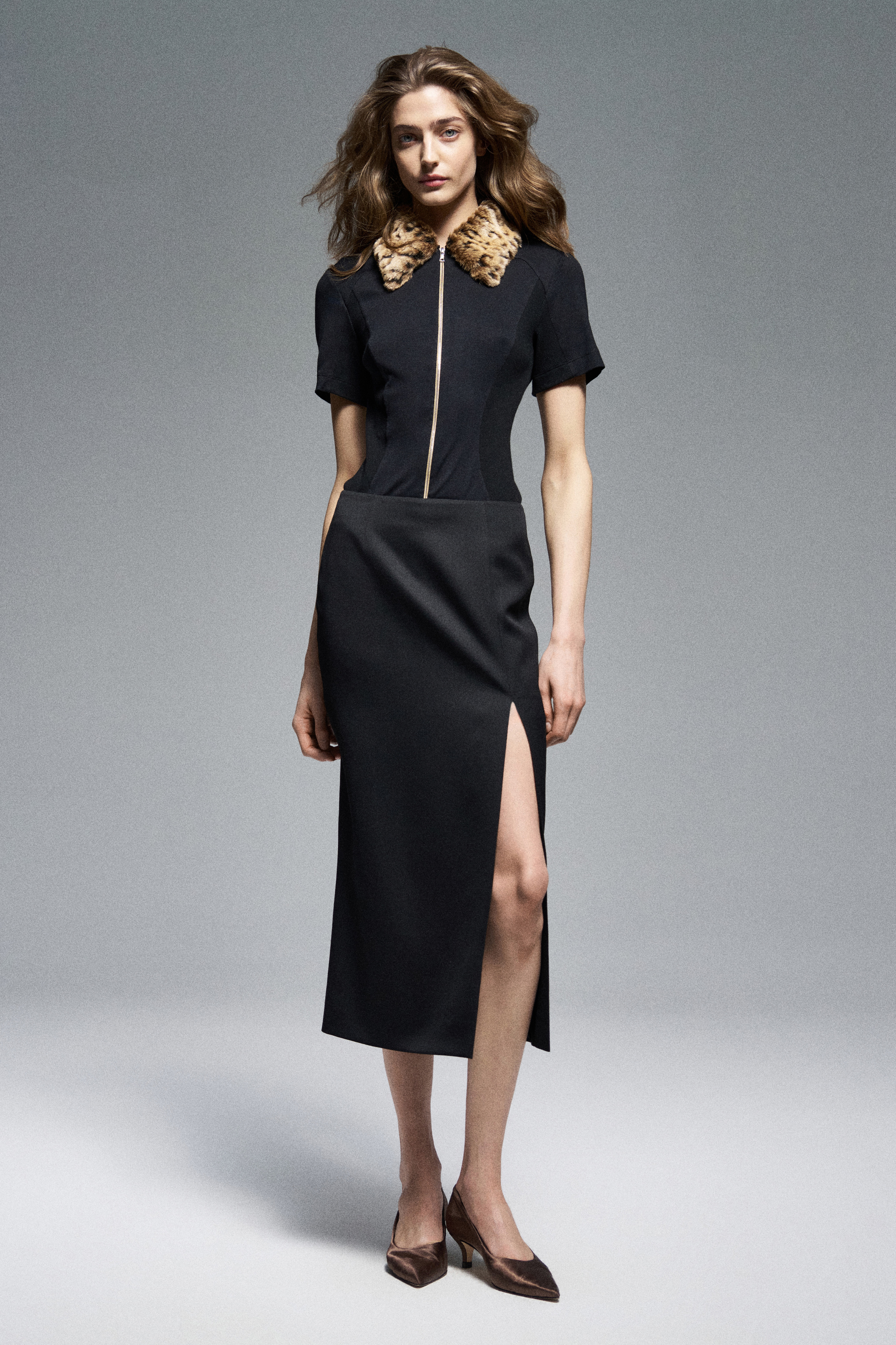 Юбка-миди из костюмной ткани с шерстью. Посадка ниже линии талии и с разрезом сбоку.