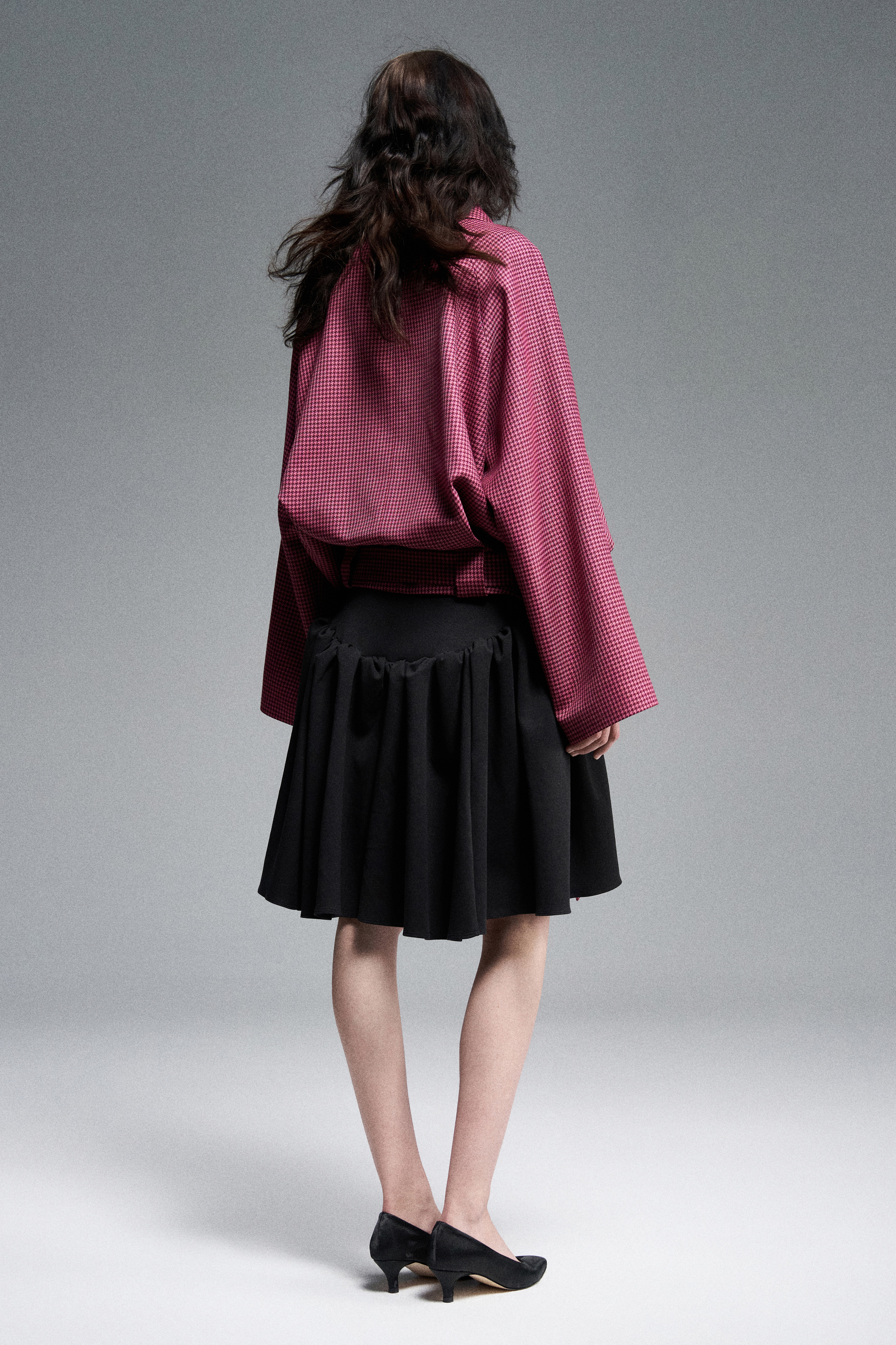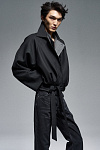 Полупальто из шерсти. Скульптурный силуэт-кокон с широким поясом по низу.