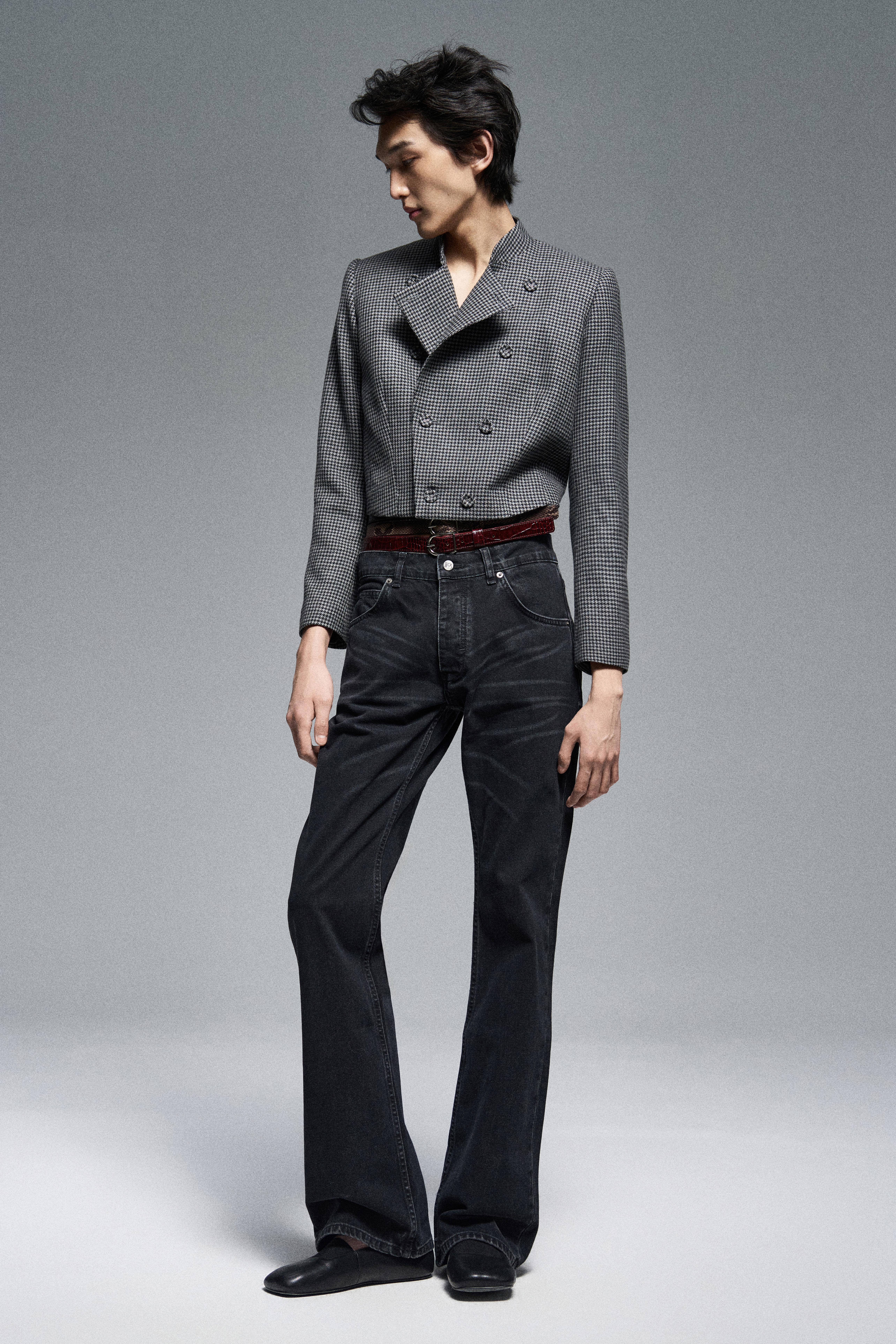 Модель трансформируется: жакет можно застегивать как на мужскую, так и на женскую сторону. Возможна закрытая посадка под шею или вариант с лацканами. Также изделие можно застегнуть встык, формируя мягкие борта с отворотами.