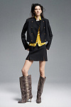 Кроп-жакет в гусарском стиле прямого кроя из костюмной ткани. Короткий воротник-стойка. Застежка на обтяжные пуговицы в цвет изделия. Прямой нижний край. Сзади — декоративная планка.