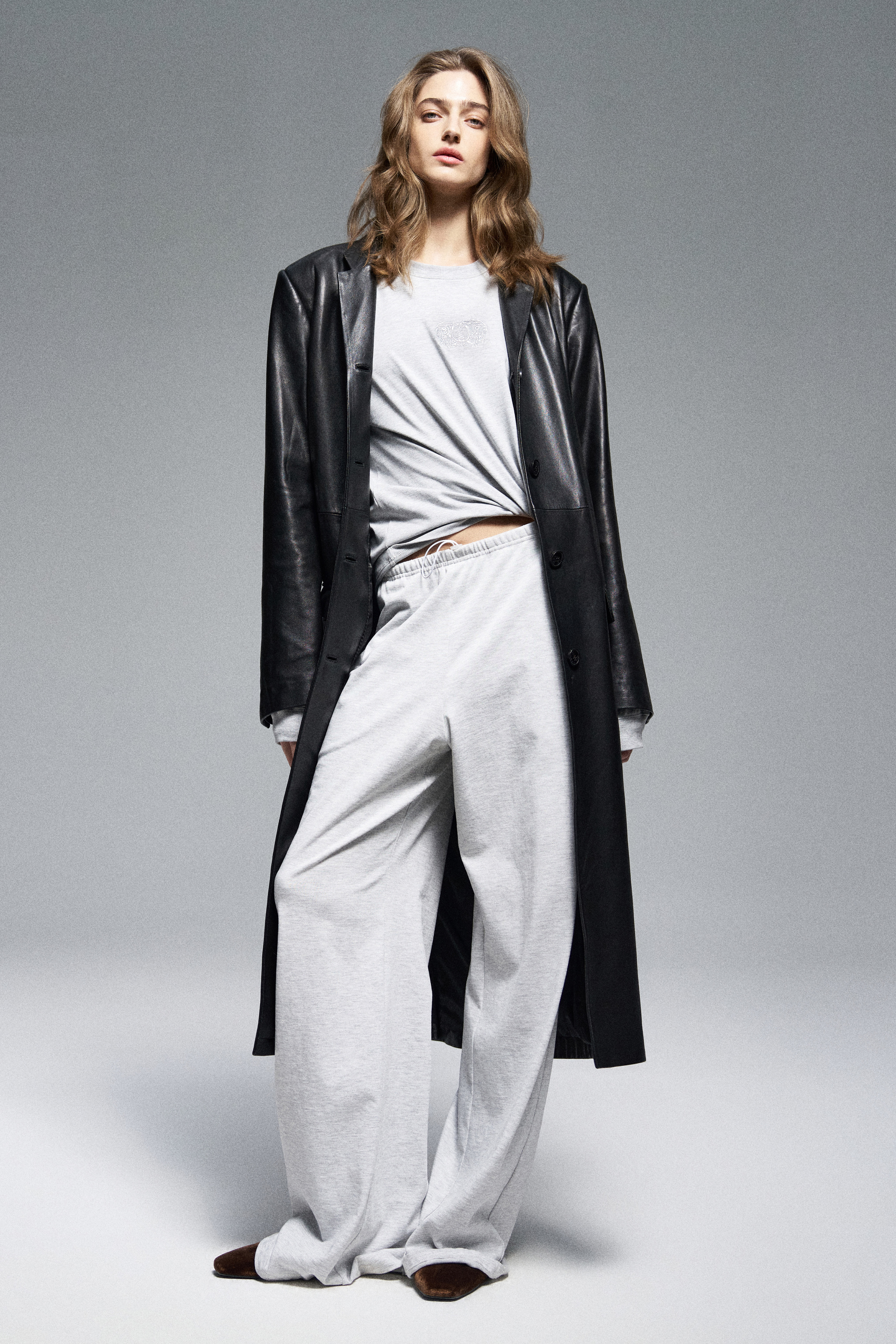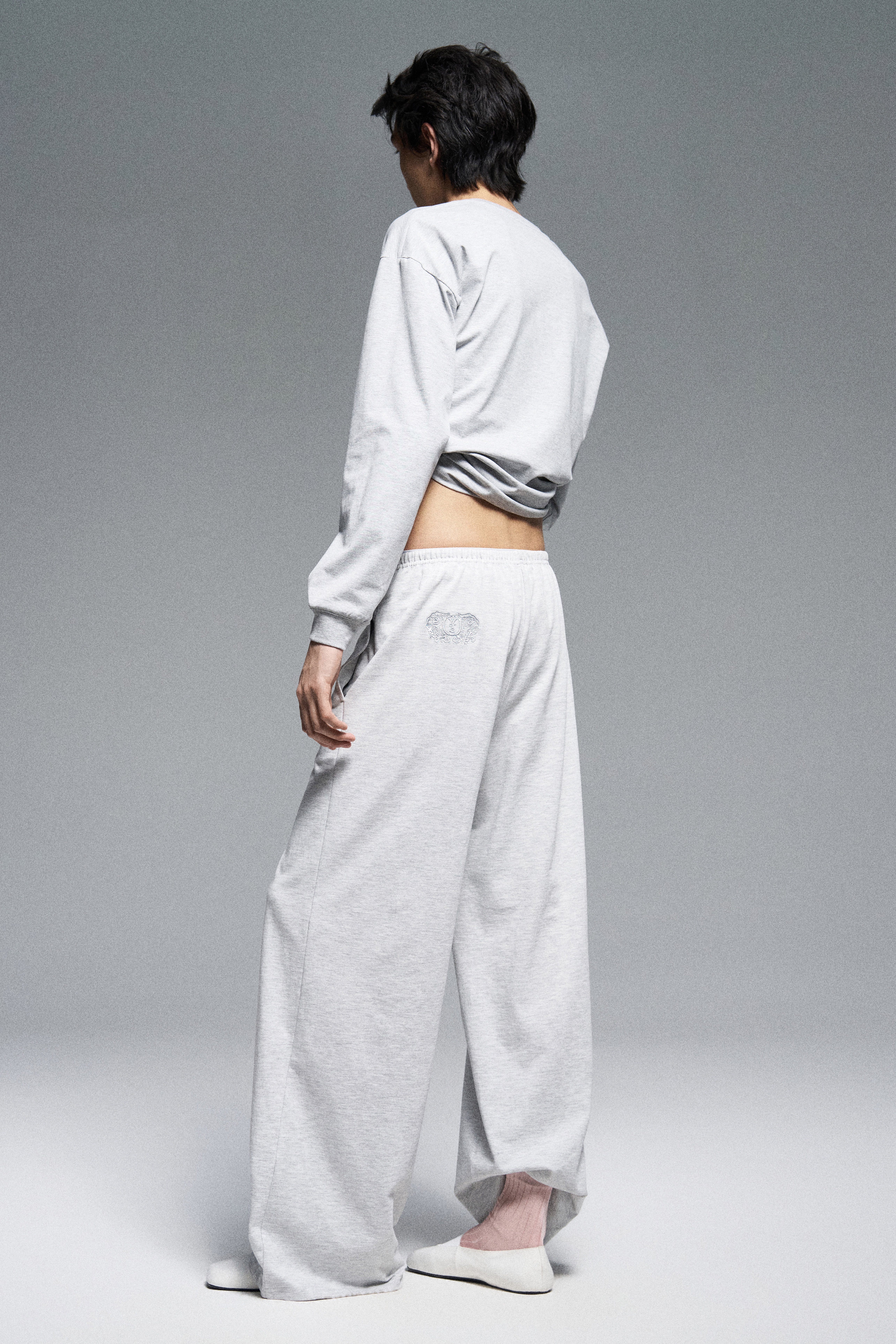 Широкие спортивные брюки прямого кроя из хлопка. Регулируемый пояс на кулиске.