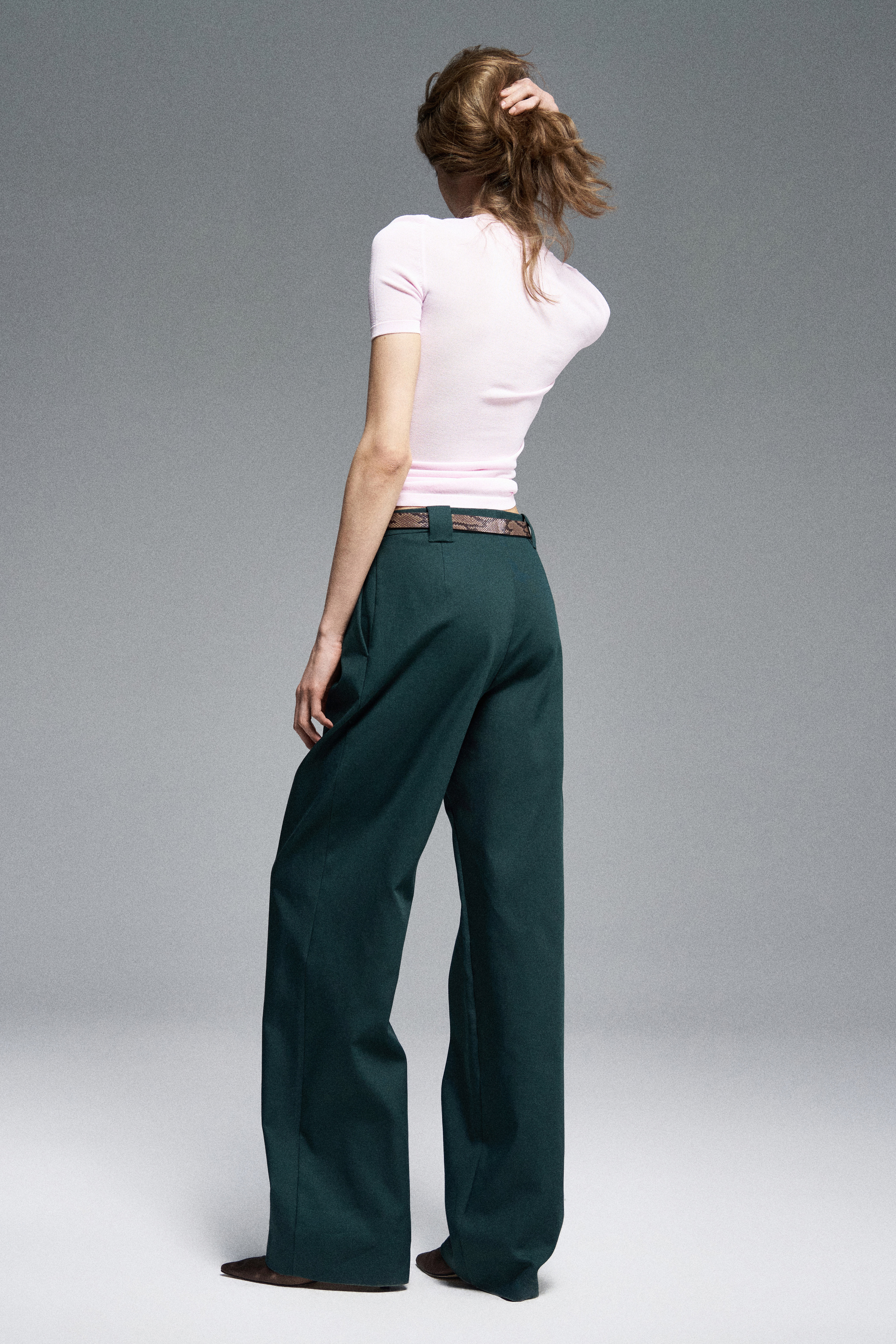 Объемные брюки из хлопка с пропиткой. Модель дополнена защипами.
